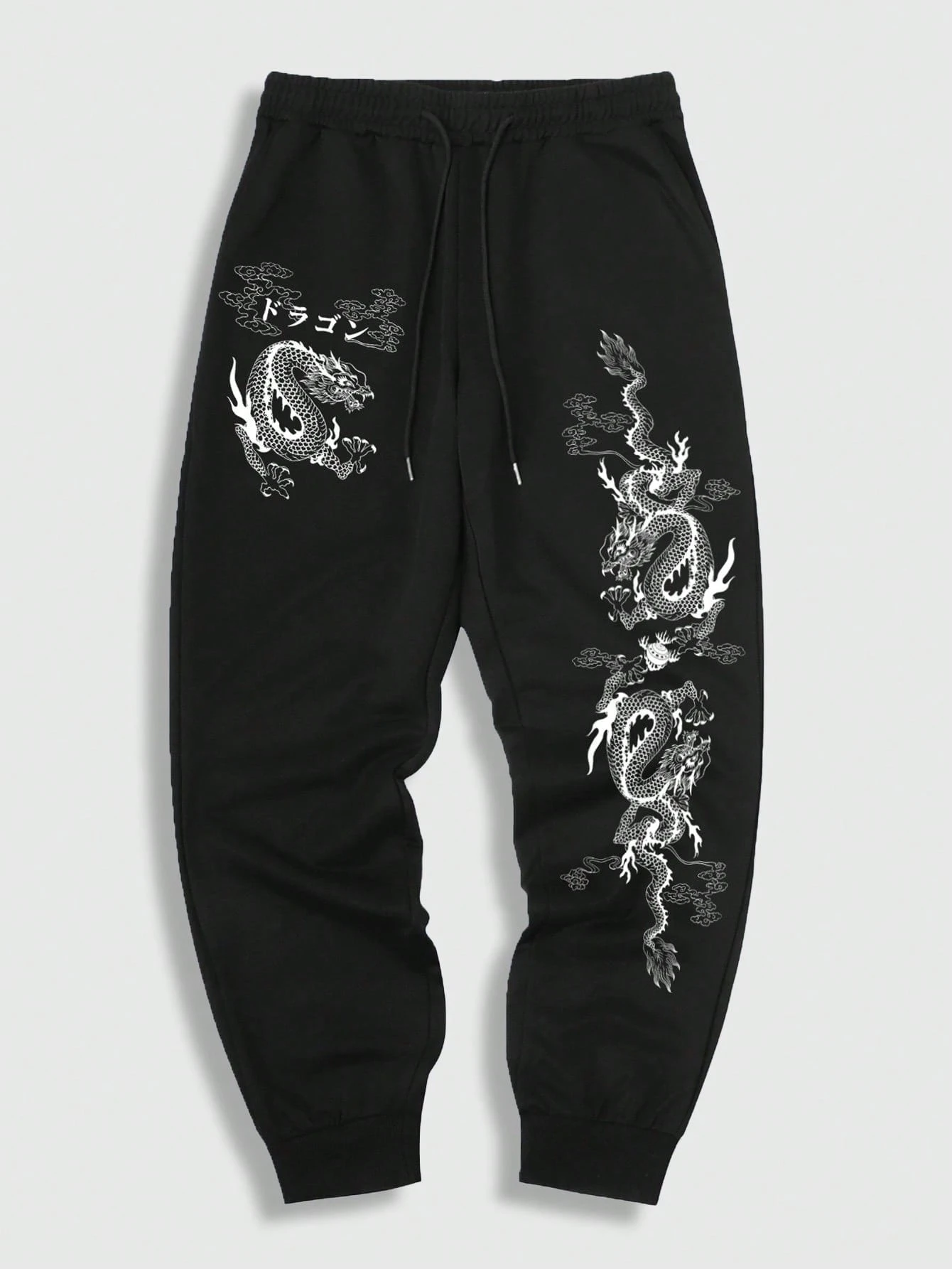 Anime Guys Dragon Graphic Drawstring Waist Sweatpants