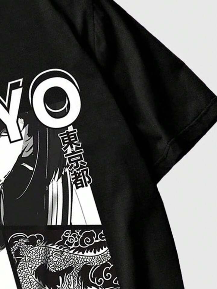 Anime Men Figure Graphic Tee & Shorts, School