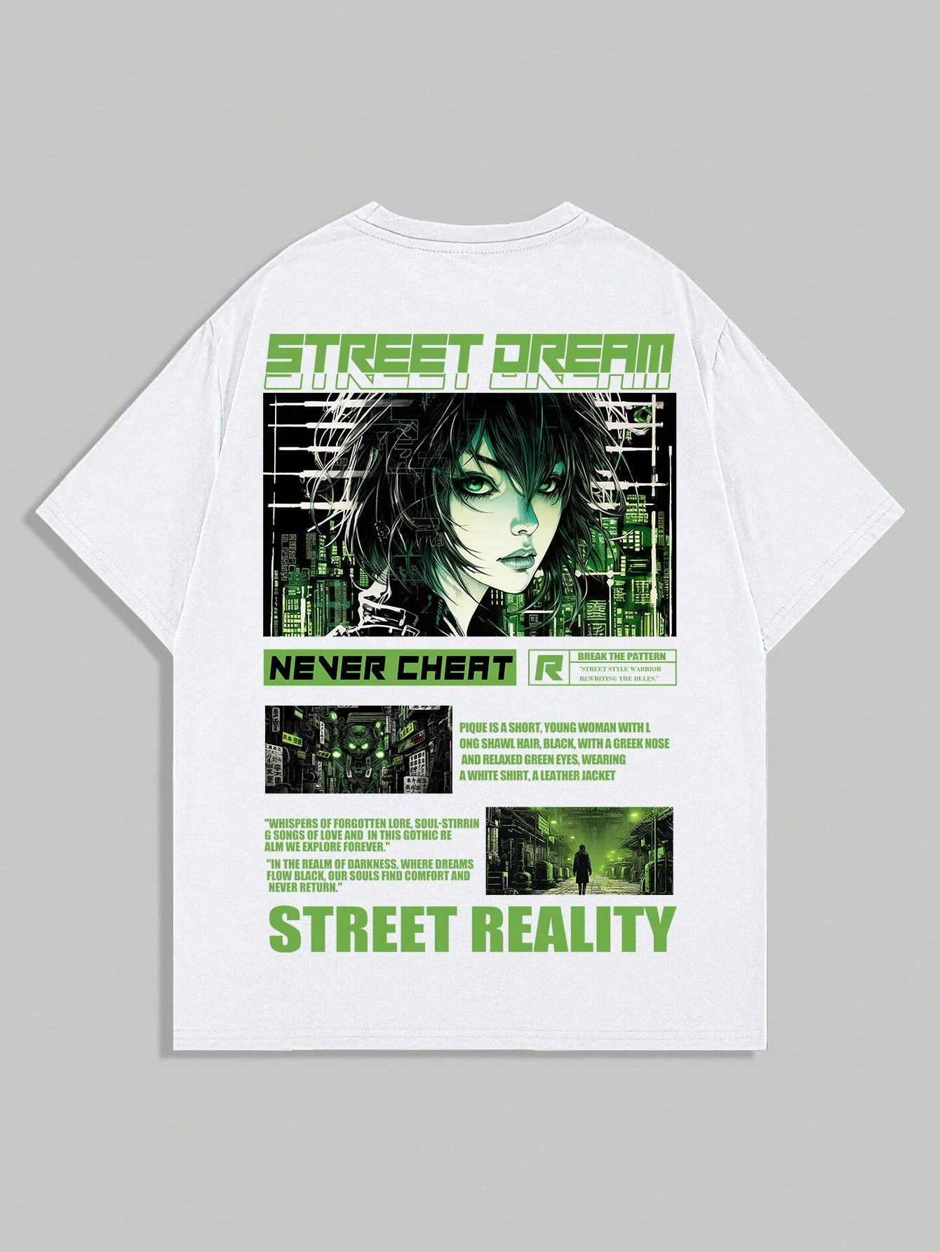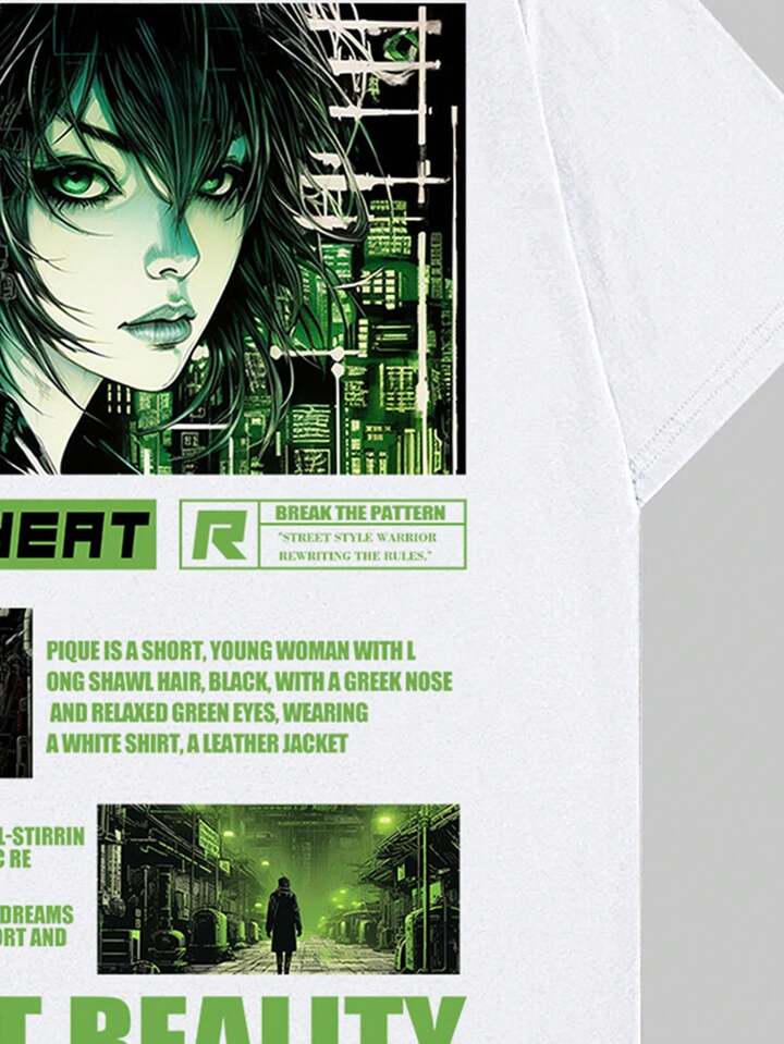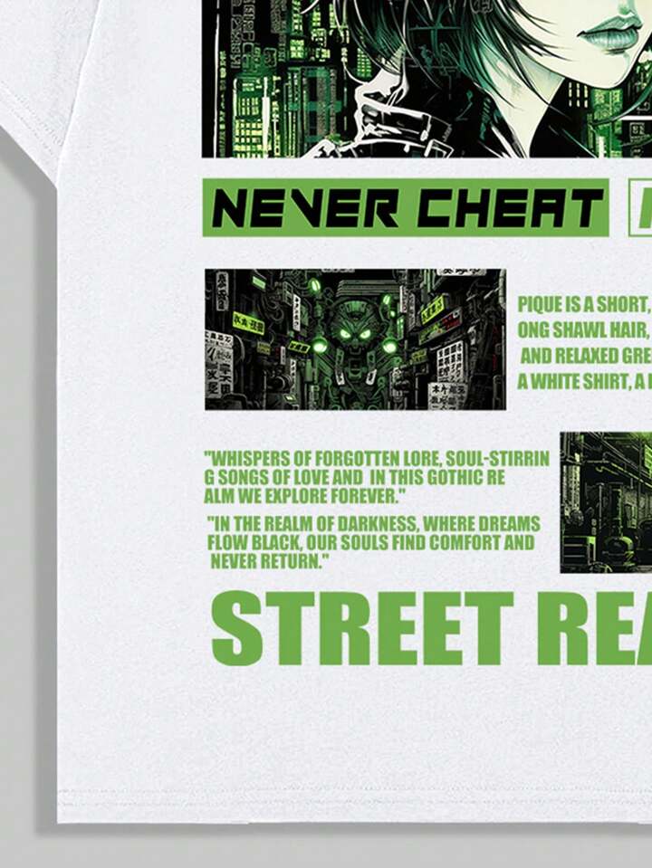 Anime Men White Cartoon Printed Short Sleeve T-Shirt With Back Design