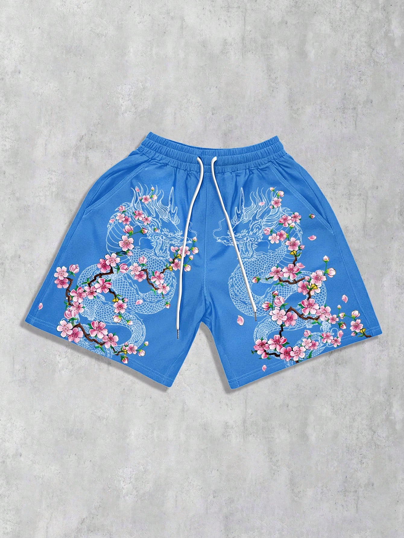 Men's Anime Dragon Graffiti Print Shorts, Suitable For Spring And Summer Daily Wear