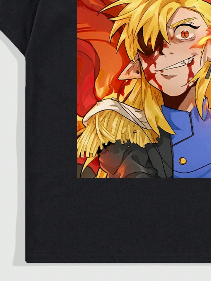 Anime Men's Cartoon Character Print Short Sleeve T-Shirt, Summer