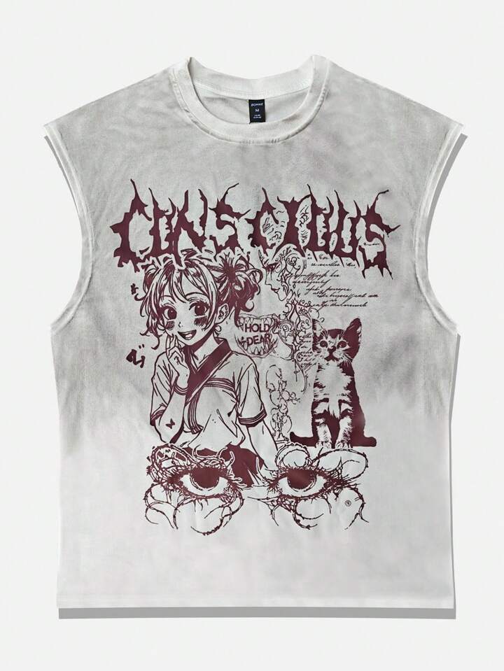 Anime Men's Casual Japan Style Loose Fit Retro Tie-Dye Graphic Tank Top