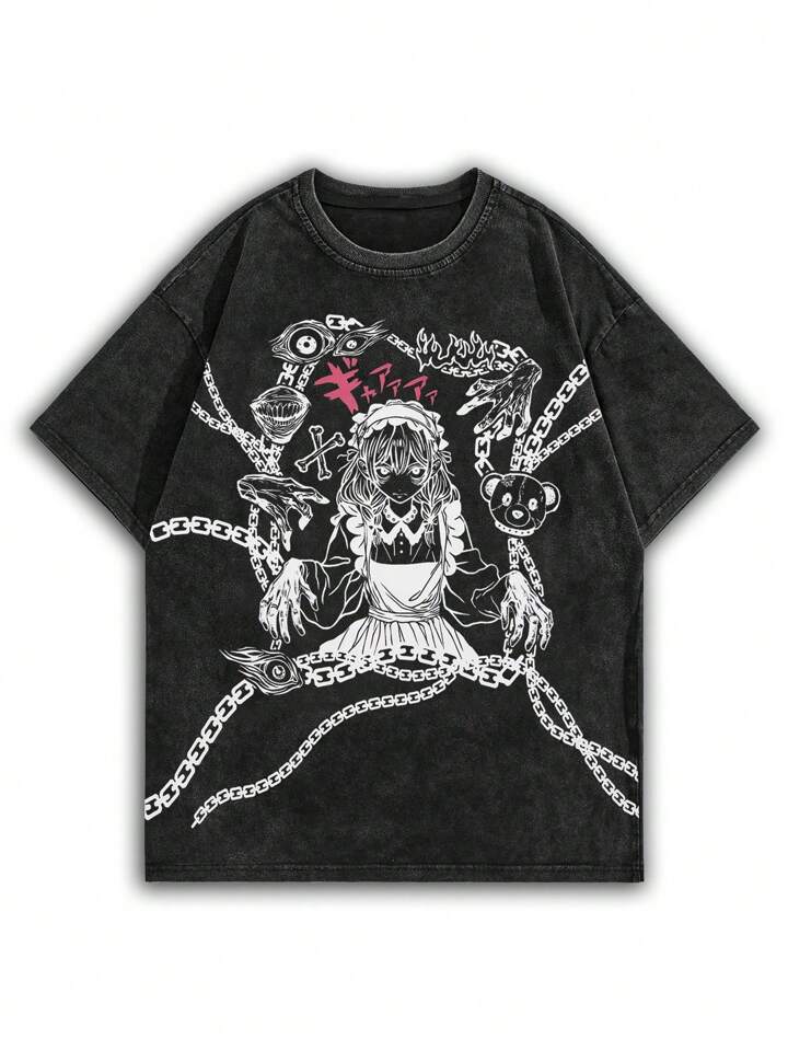 Anime Men's Distressed Acid Wash Short Sleeve T-Shirt
