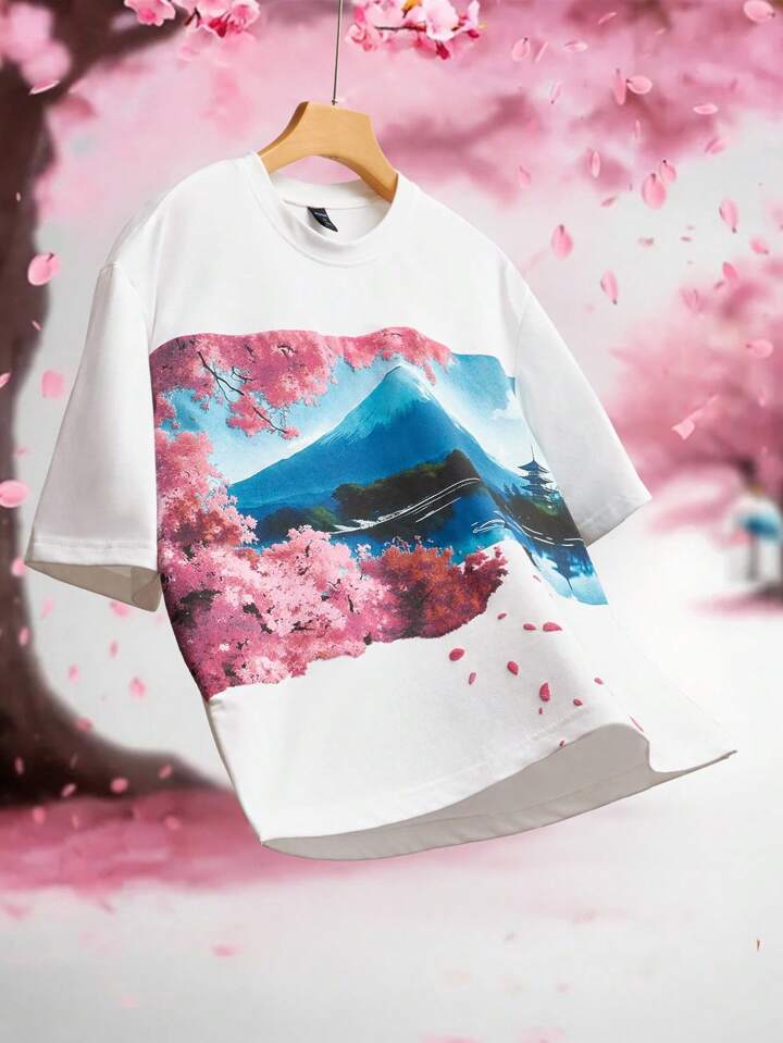Anime Men's Japanese Style Printed Short Sleeve T-Shirt