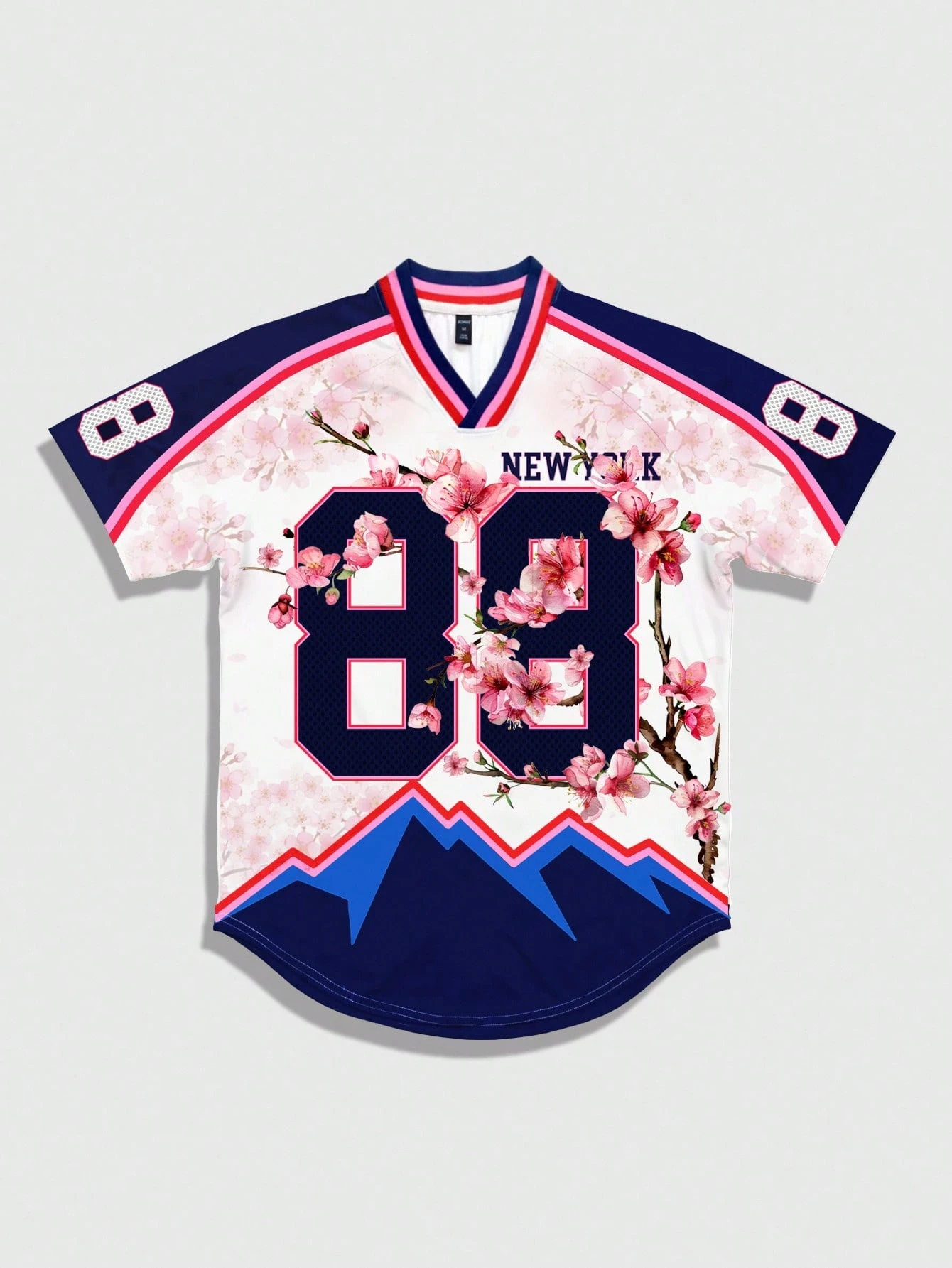 Anime Men's Sakura Ice Hockey Sports Jersey Tee, Suitable For Everyday Casual Wear In Spring/Summer