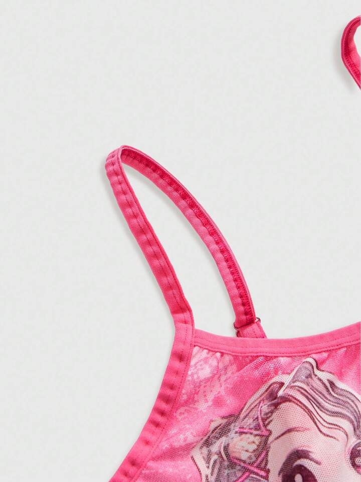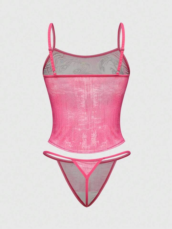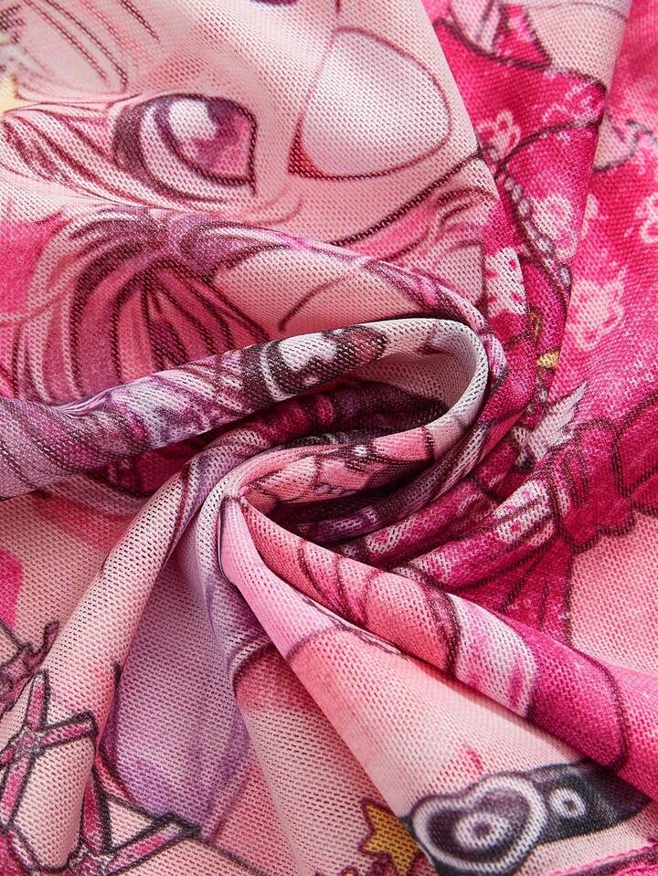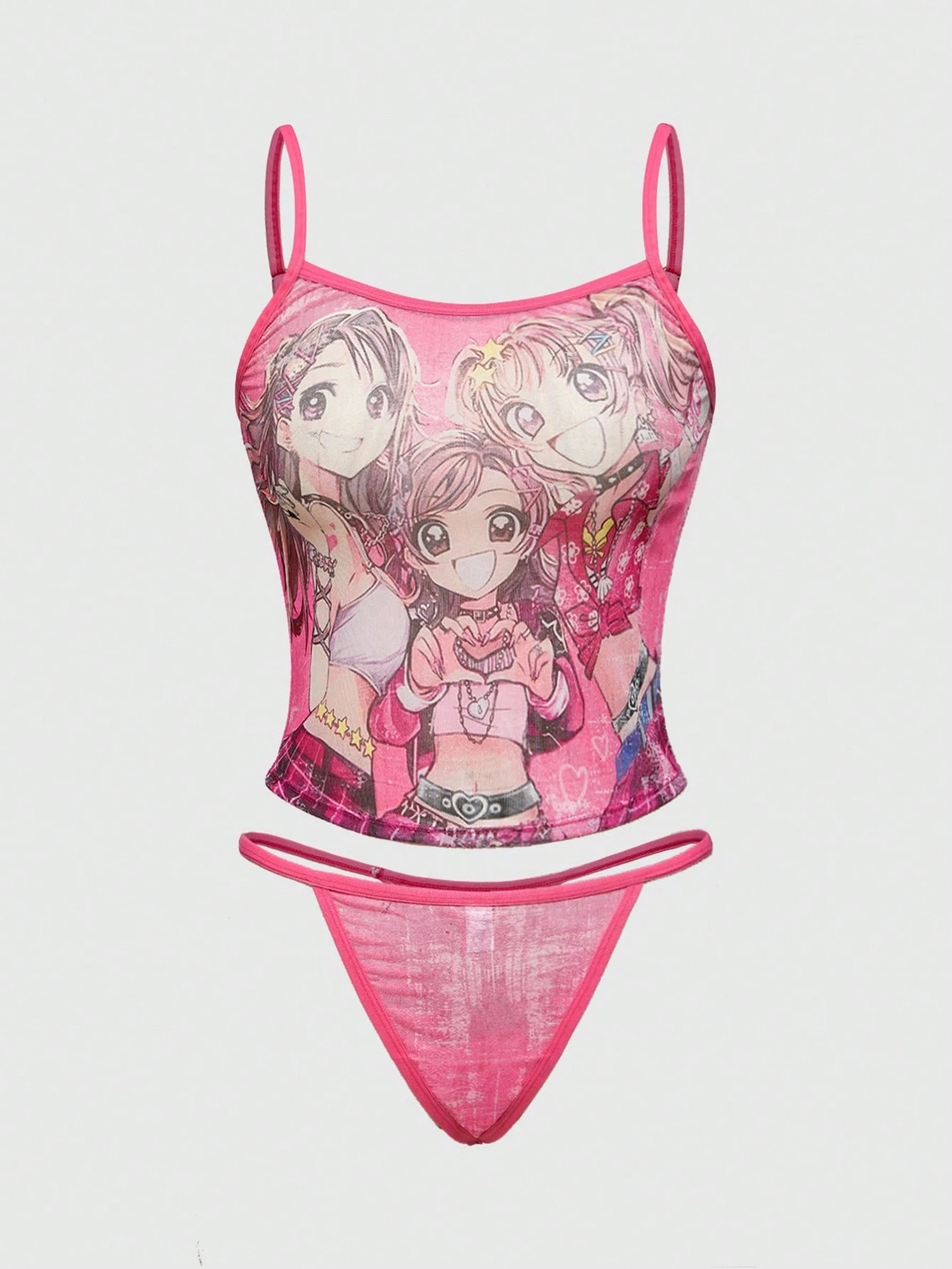 Anime School Girl Print Sexy Sheer Mesh Lingerie Set For Women