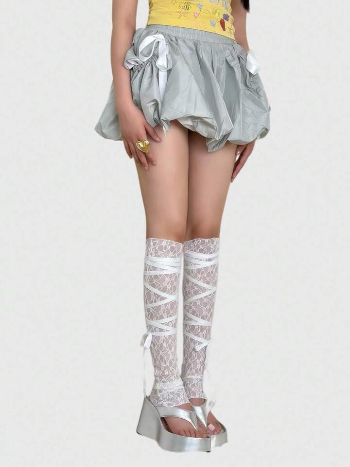 Anime Y2K Punk Style Asymmetrical Leg Socks With Criss-Cross Straps Over-The-Knee Socks, Solid Color Adjustable Women Long Tube Socks, Suitable For Outing, Dating, Campus, Music Festivals, Etc.