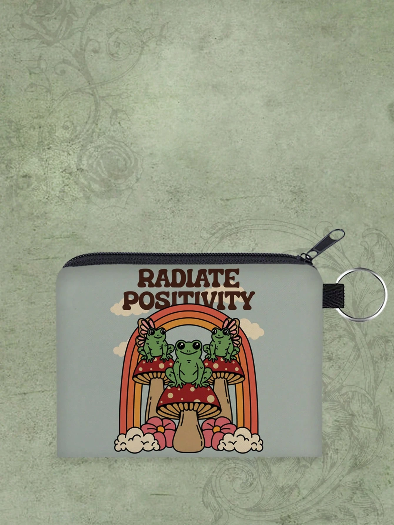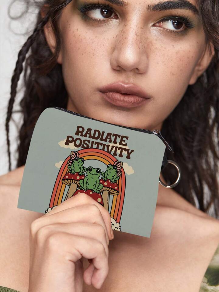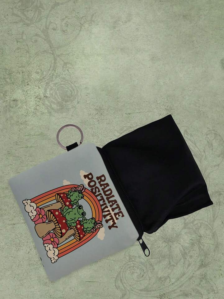 Aranza Sanchez Fairycore Cartoon Frog And Mushroom Printed Zipper Coin Purse