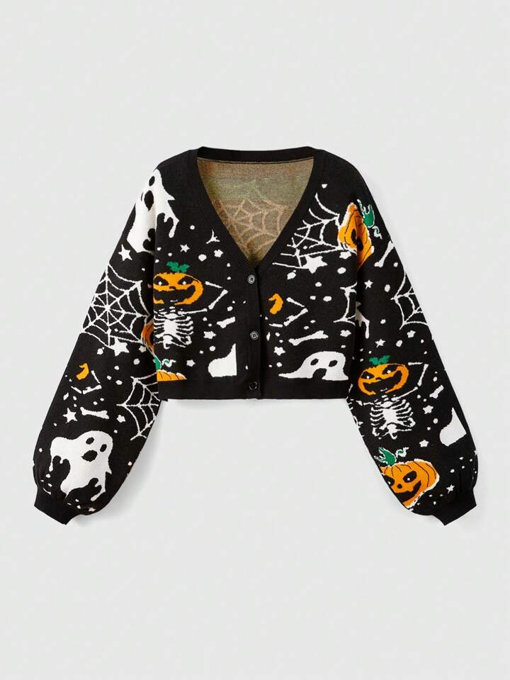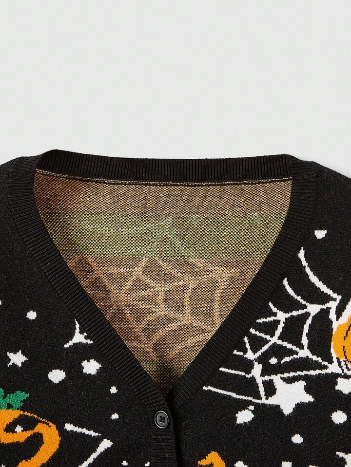 Ariqdhaksinargha Halloween Pattern Button Front Cardigan