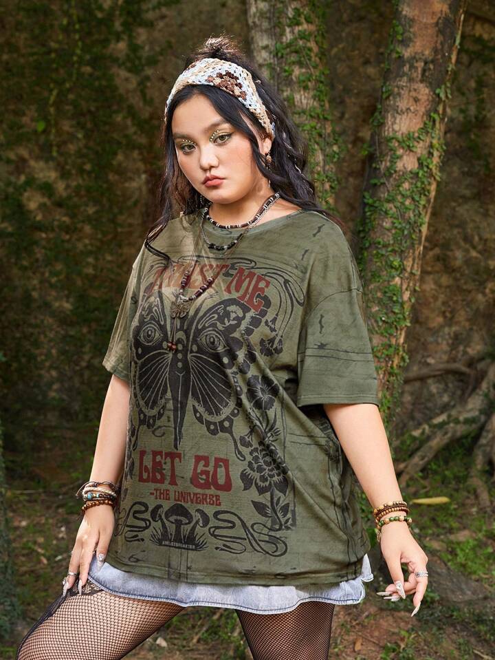 Ashley Baxter Fairycore Plus Butterfly & Letter Graphic Drop Shoulder Tee