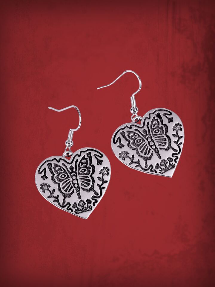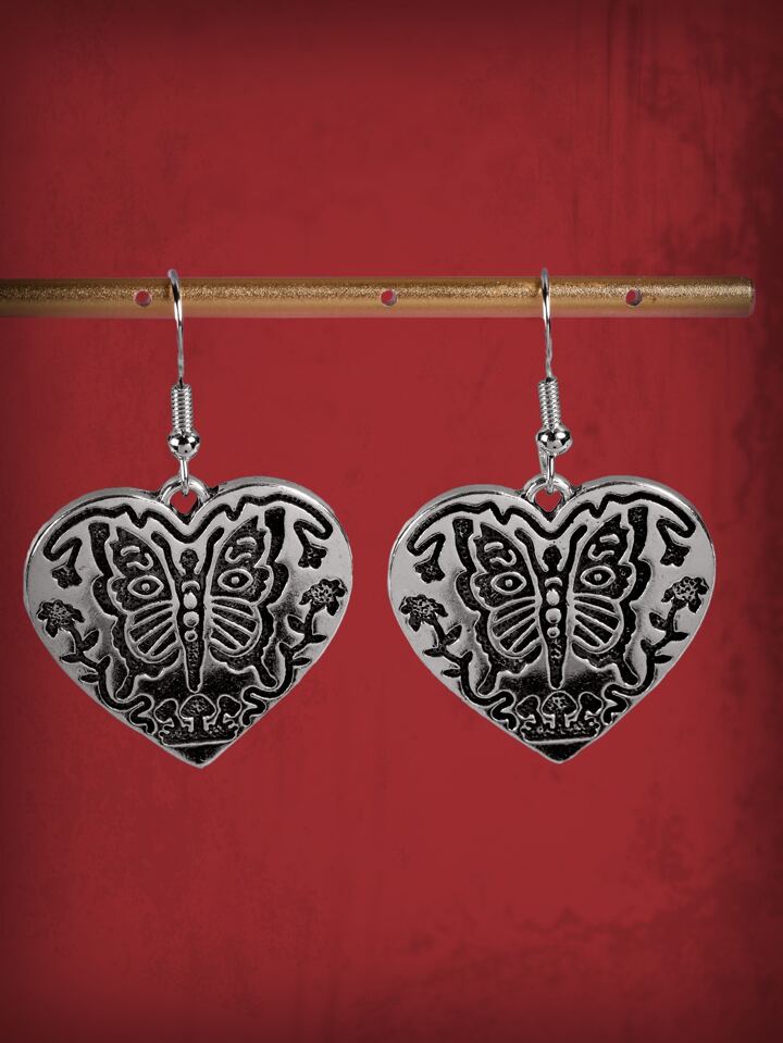 Ashley Baxter Grunge Punk Butterfly Detail Heart Decor Drop Earrings