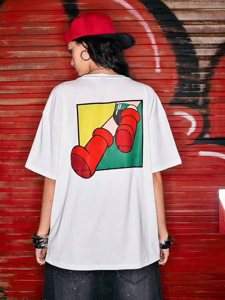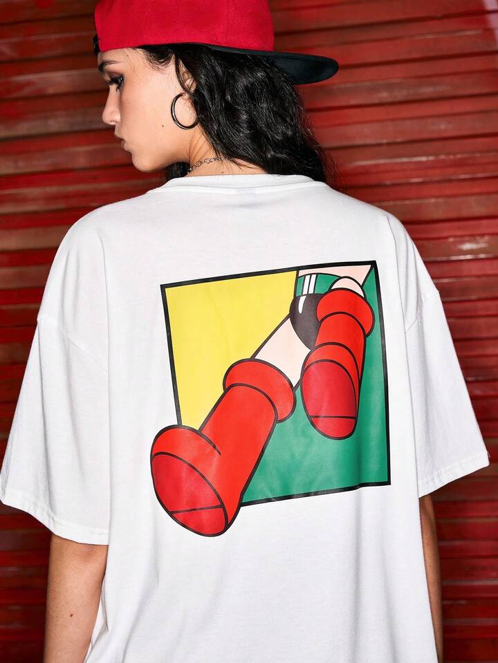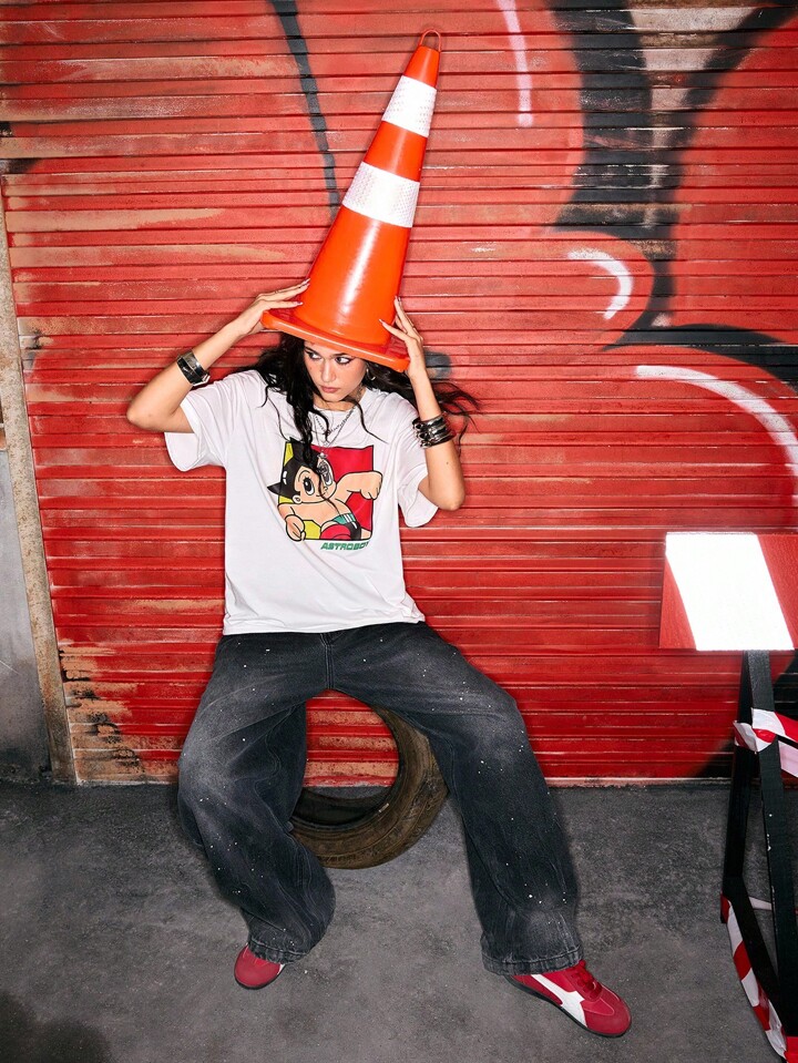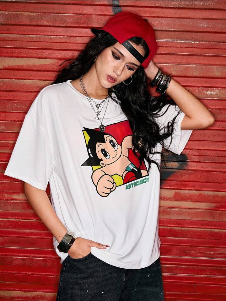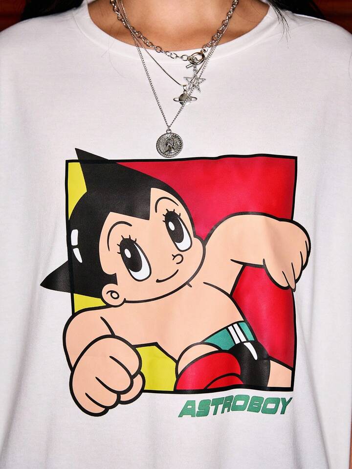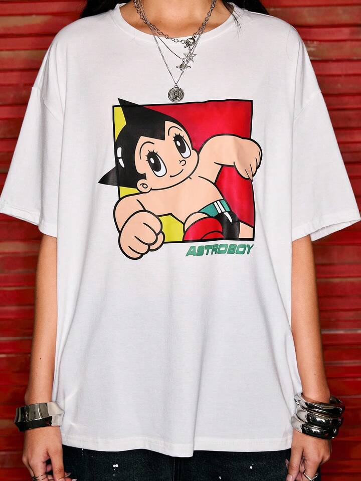 Astro Boy X ROMWE Cute Cartoon Print Loose Women White T-Shirt