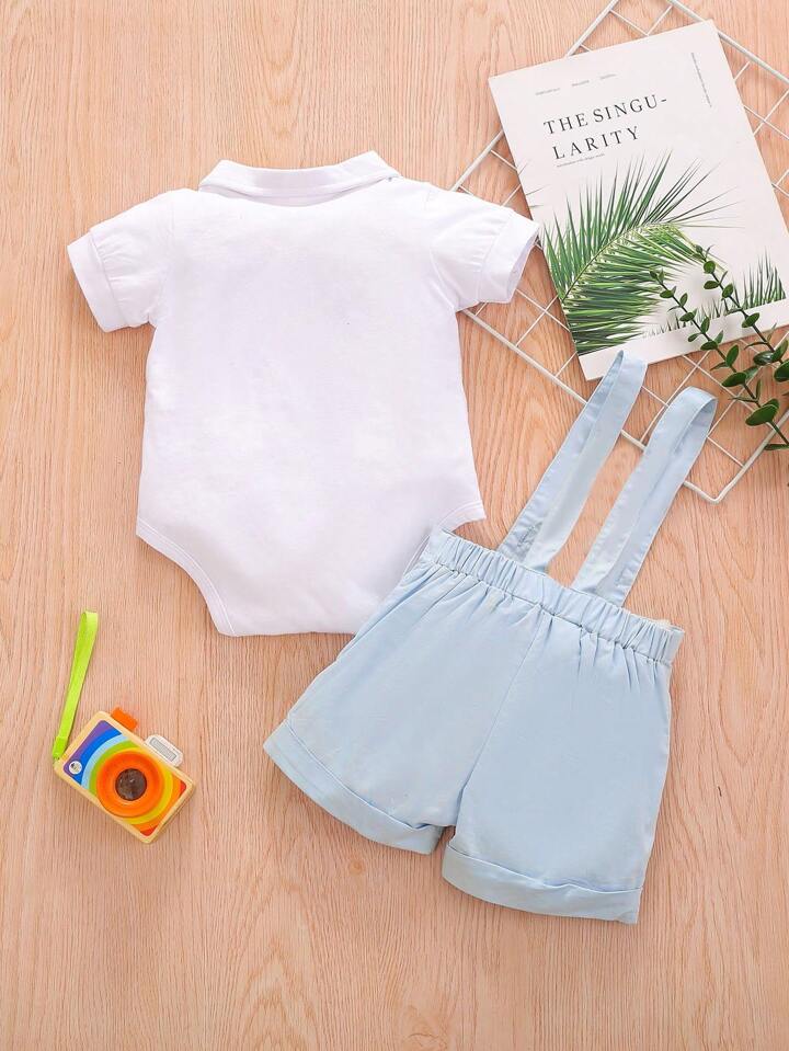Baby Boy Bow Tie Polo Neck Bodysuit With Suspender Shorts