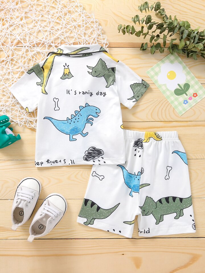 Baby Boy Dinosaur And Letter Graphic Shirt & Shorts