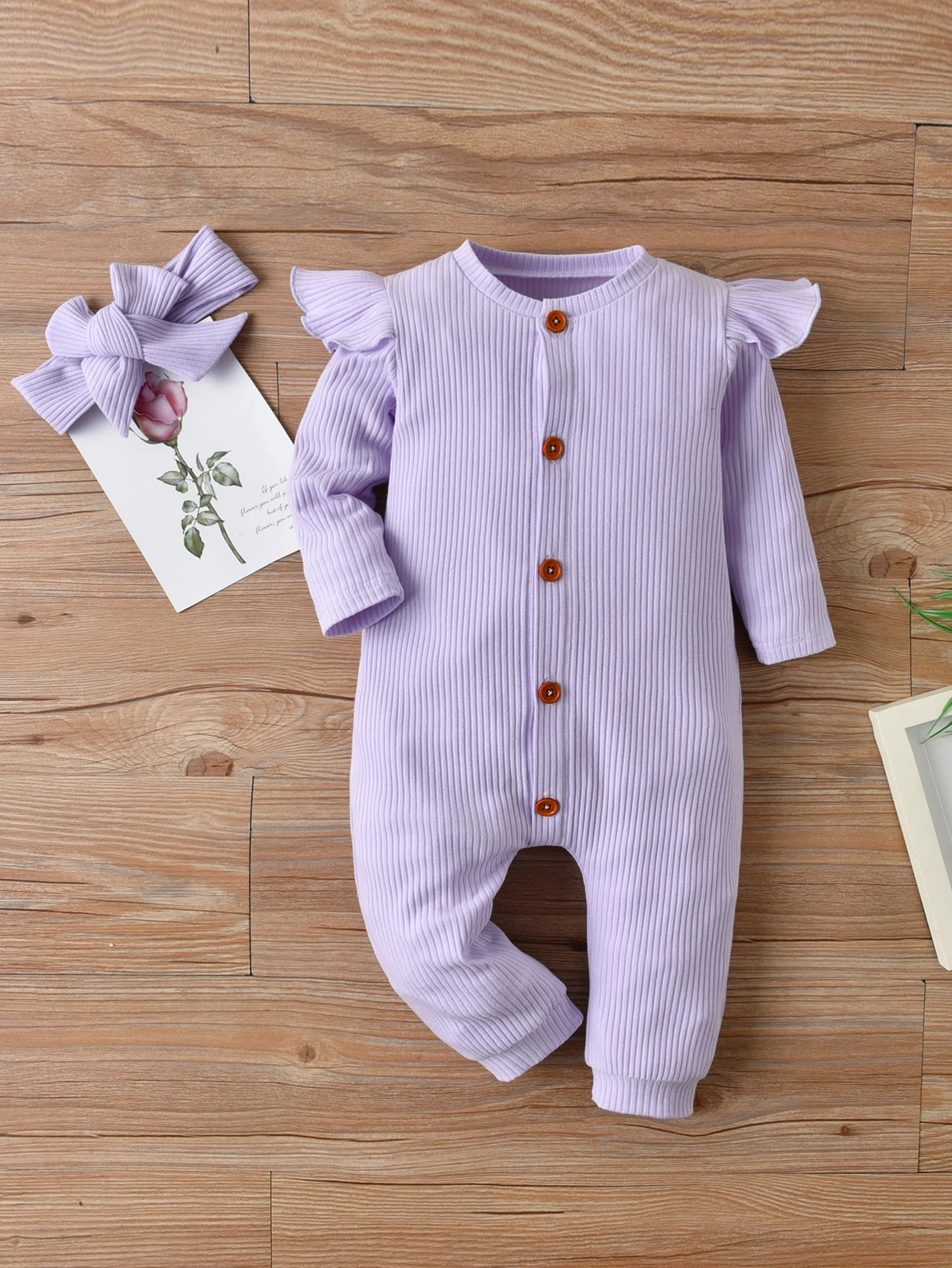 Baby Girl Ruffle Trim Jumpsuit With Headband