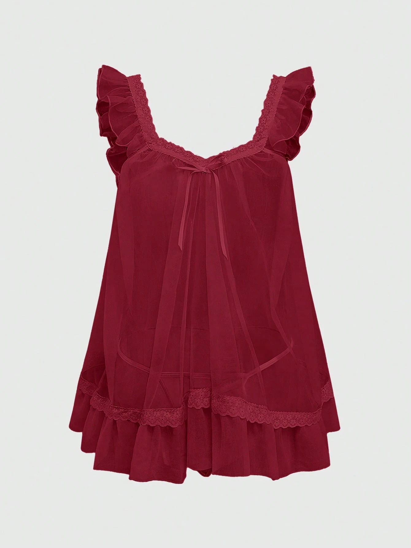 Babydoll Kawaii Cute Loose Sheer Dress, Mesh Lace Patchwork Bow Mini Dress, Sexy Tulle Dress Set