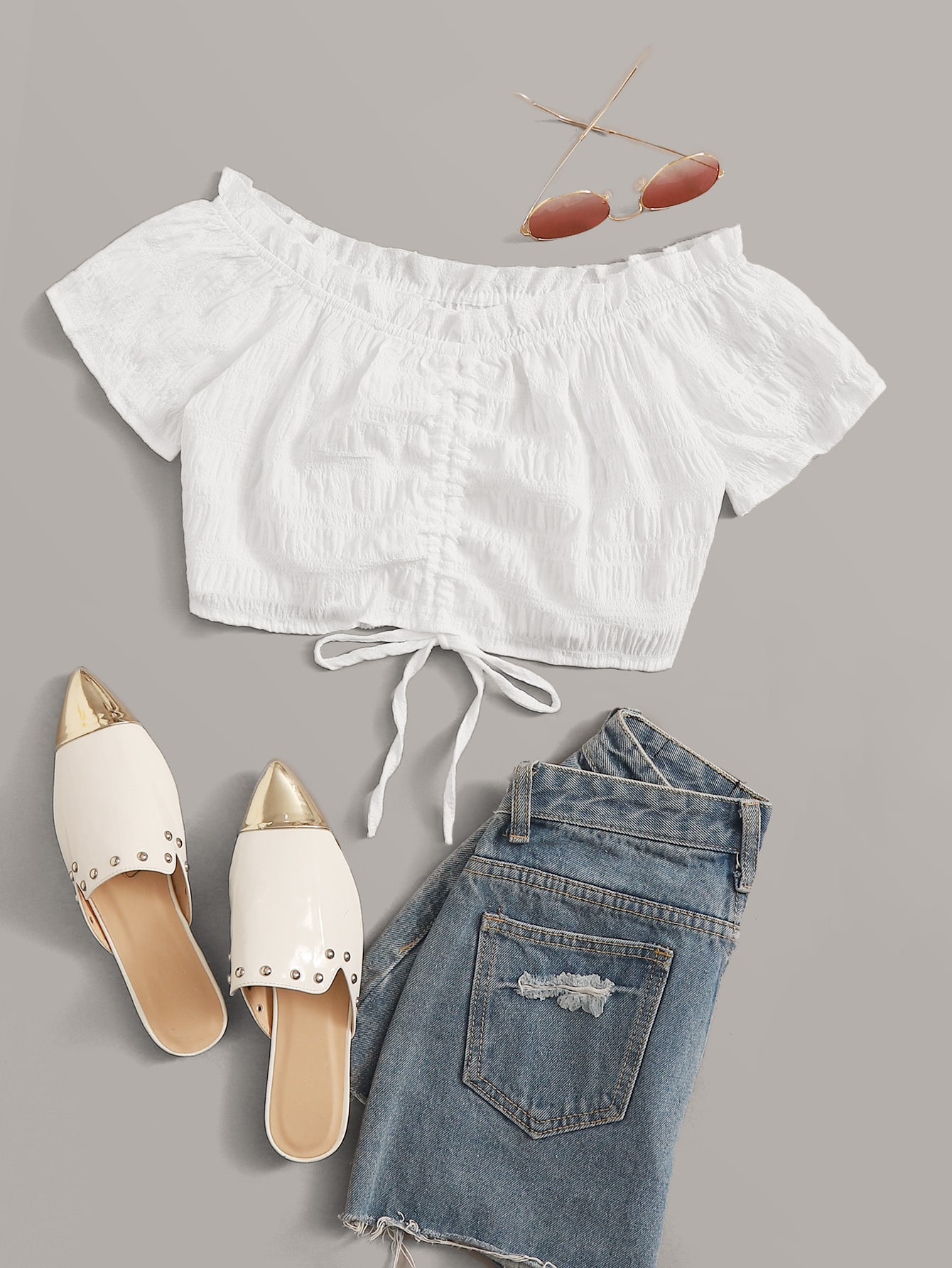 Bardot Frill Trim Drawstring Front Crop Top