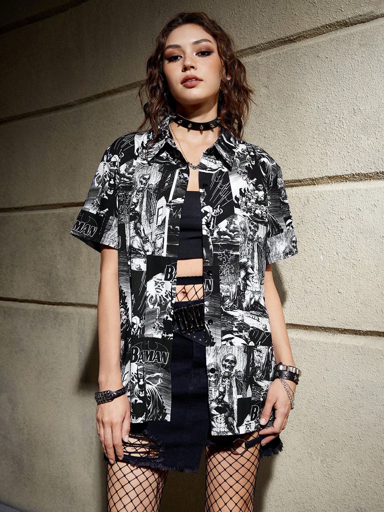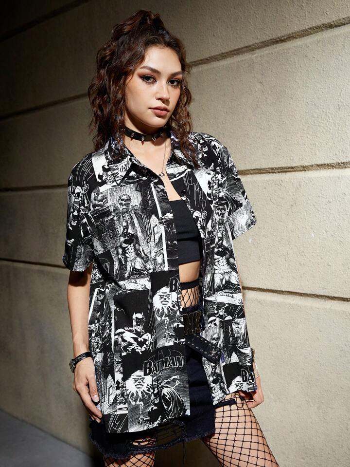 Batman X ROMWE Pop Art Print Button Front Shirt