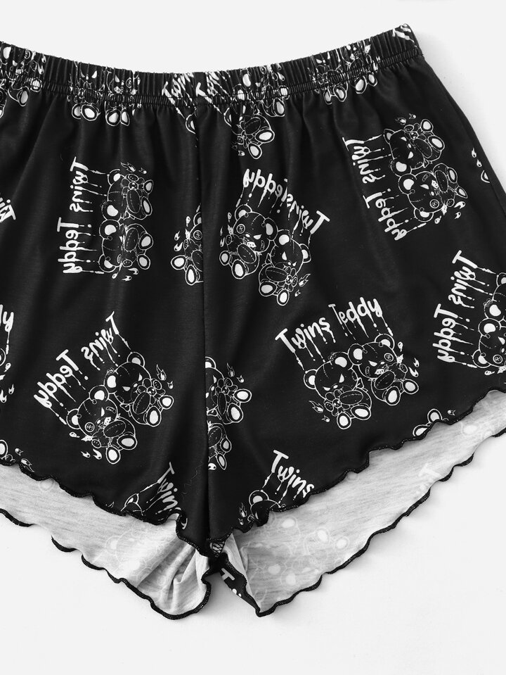 Bear Print Lettuce Trim PJ Set