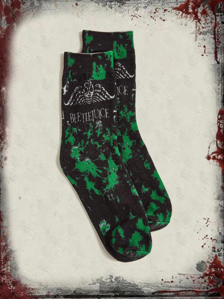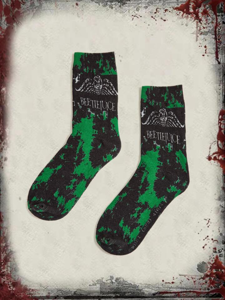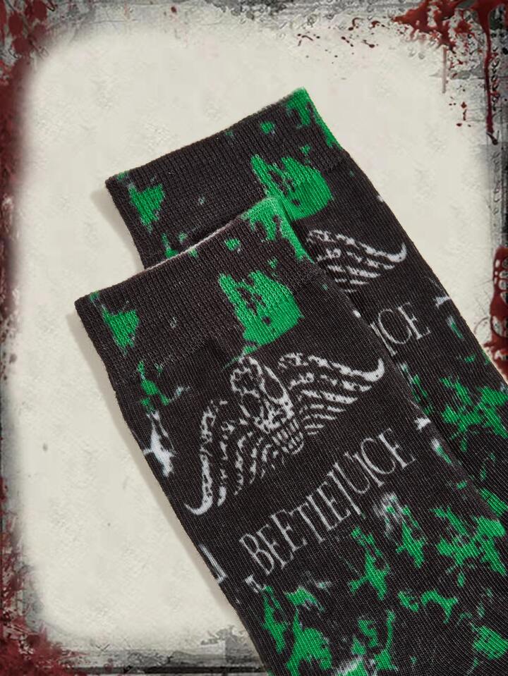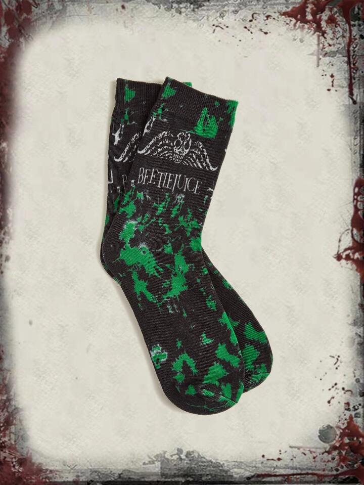Beetlejuice | ROMWE Tie Dye Skull & Letter Graphic Crew Socks