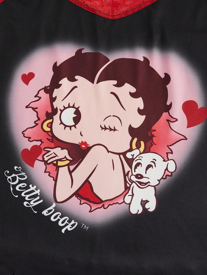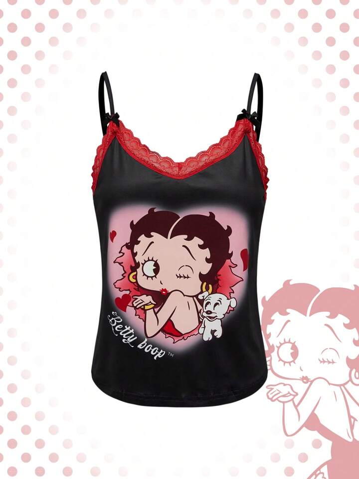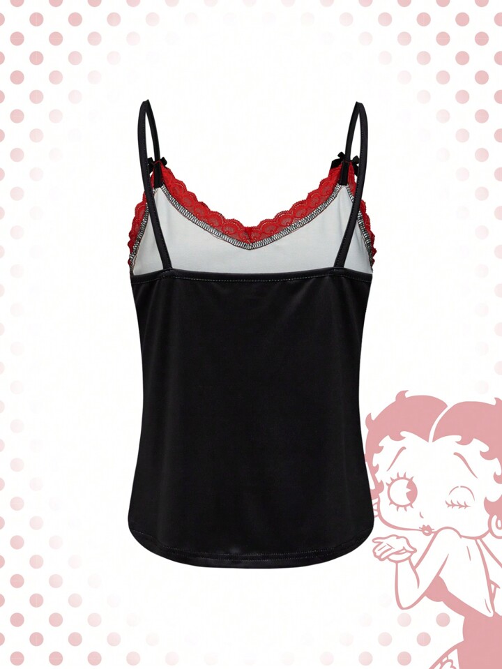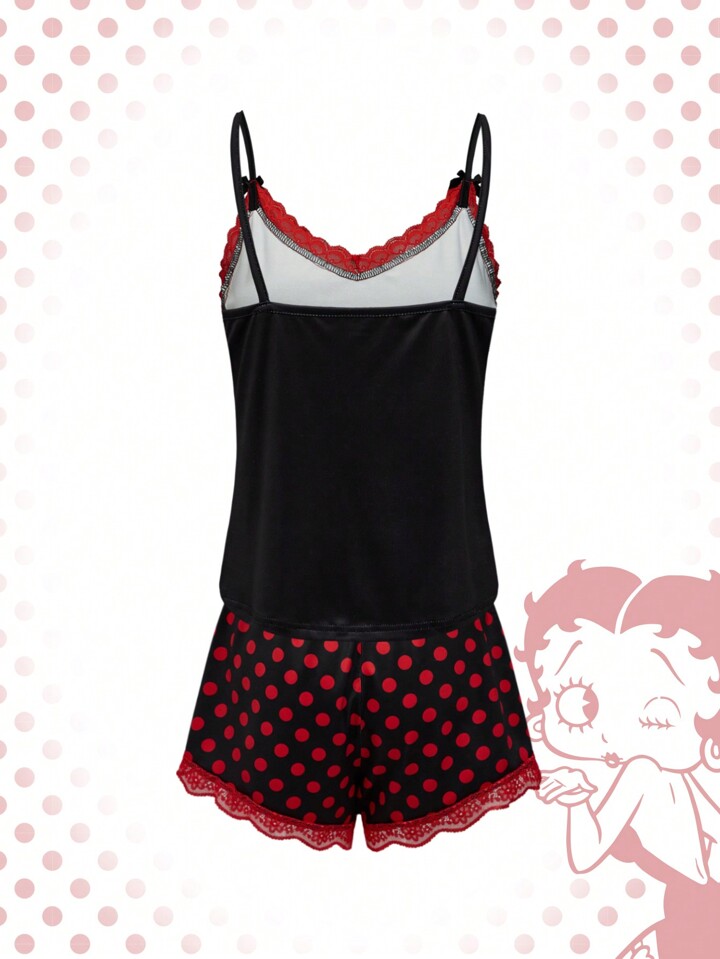 Betty Boop | ROMWE Lace Patchwork Women's Casual & Comfy Camisole Pajama Set