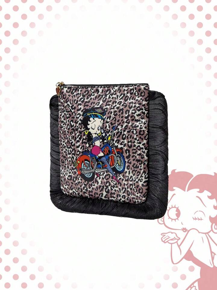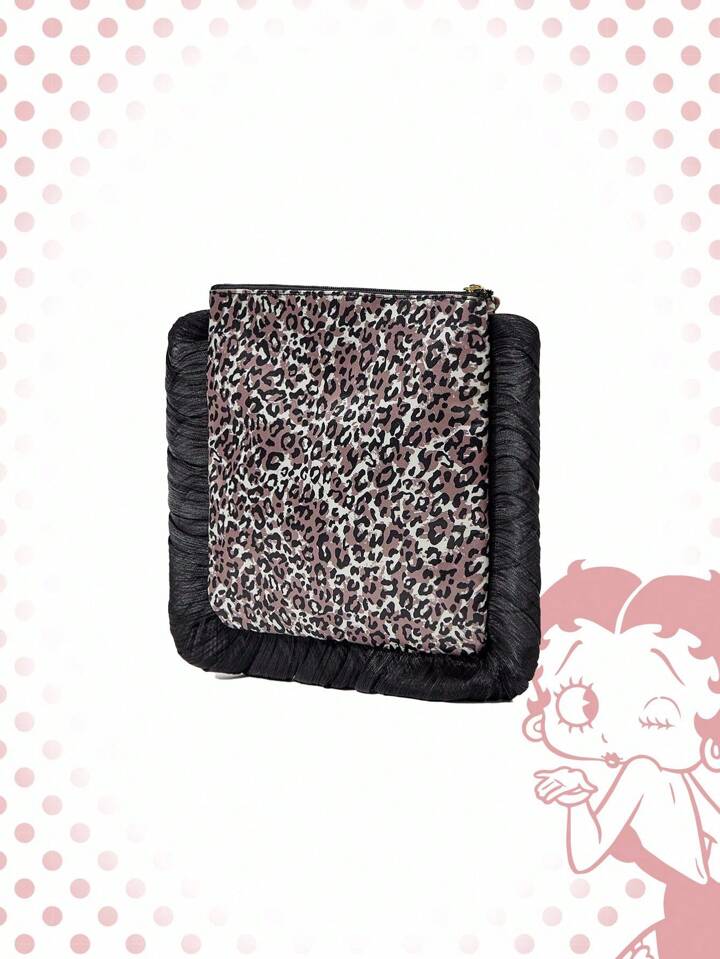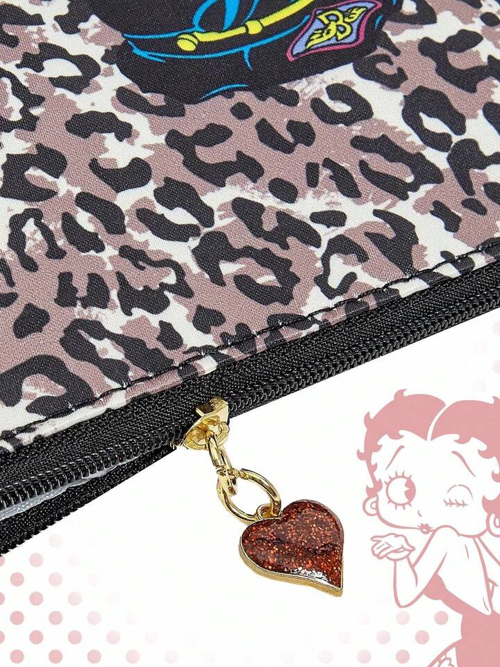 Betty Boop | ROMWE Leopard Print Large Capacity Portable Organizer Cosmetic Pouch For Women