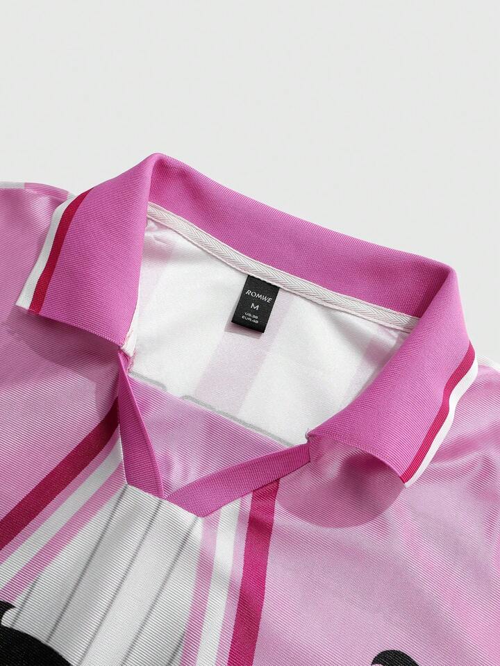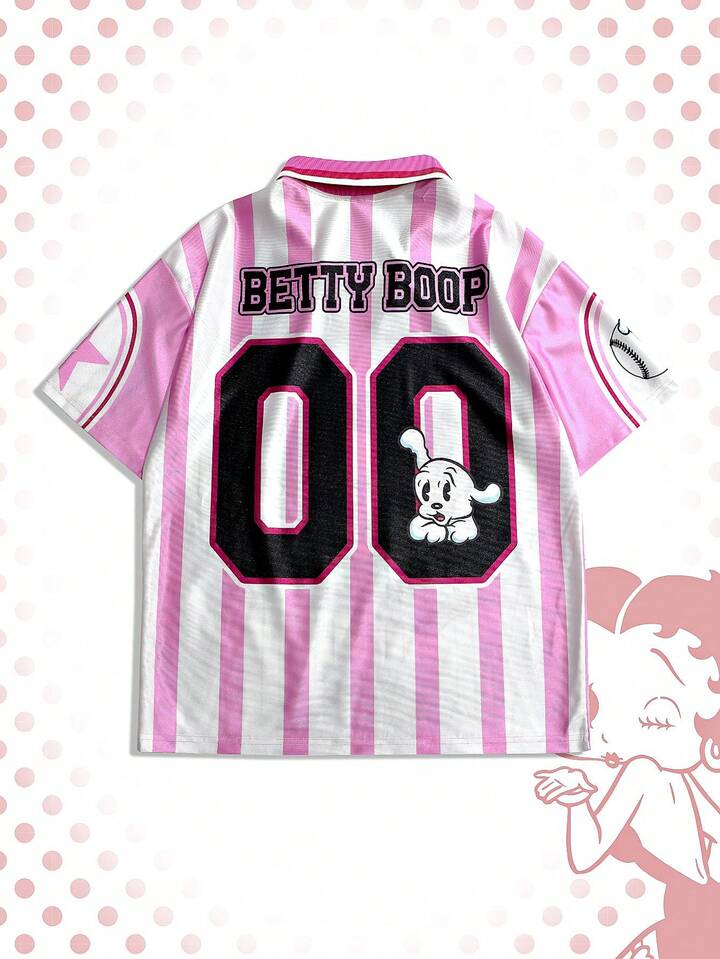 Betty Boop | ROMWE Men's Casual Fashion Street Cartoon Letter & Star Print V-Collar Short Sleeve Polo Shirt, Summer