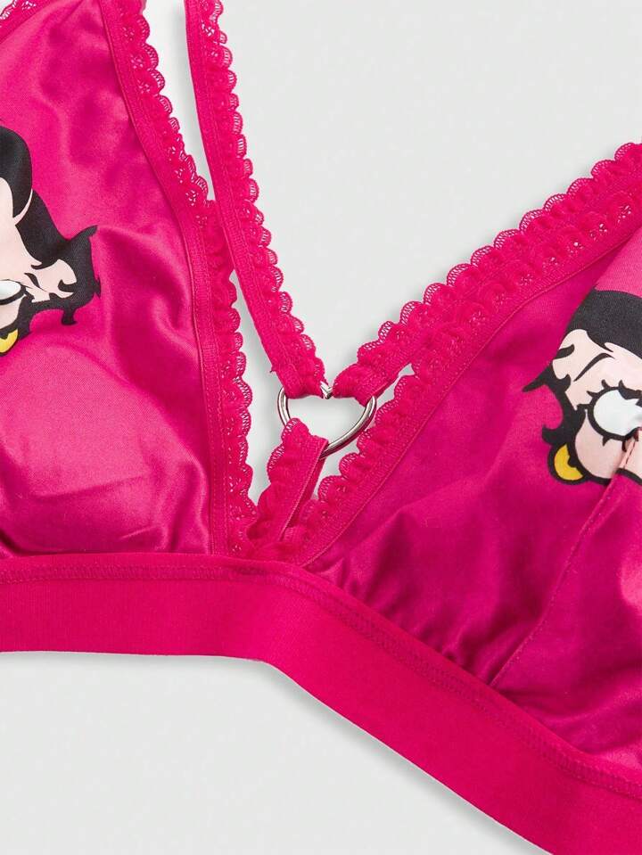 Betty Boop | ROMWE Plus Size Women Contrast Lace Figure Graphic Lingerie Bra