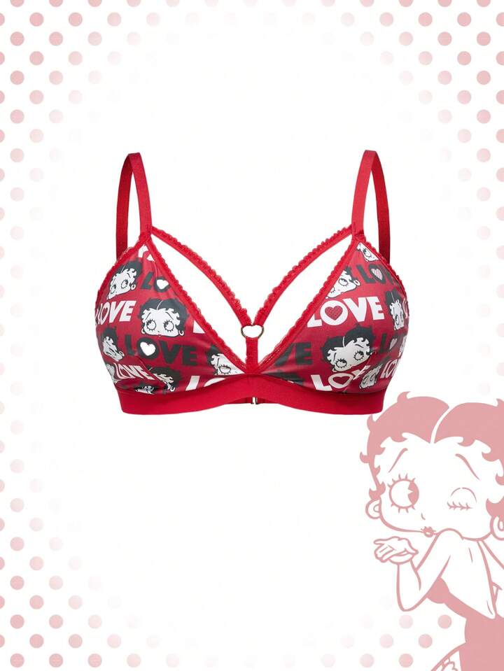 Betty Boop | ROMWE Plus Size Women Non-Wired Lace Patchwork Lingerie Bra With Letter & Figure Print