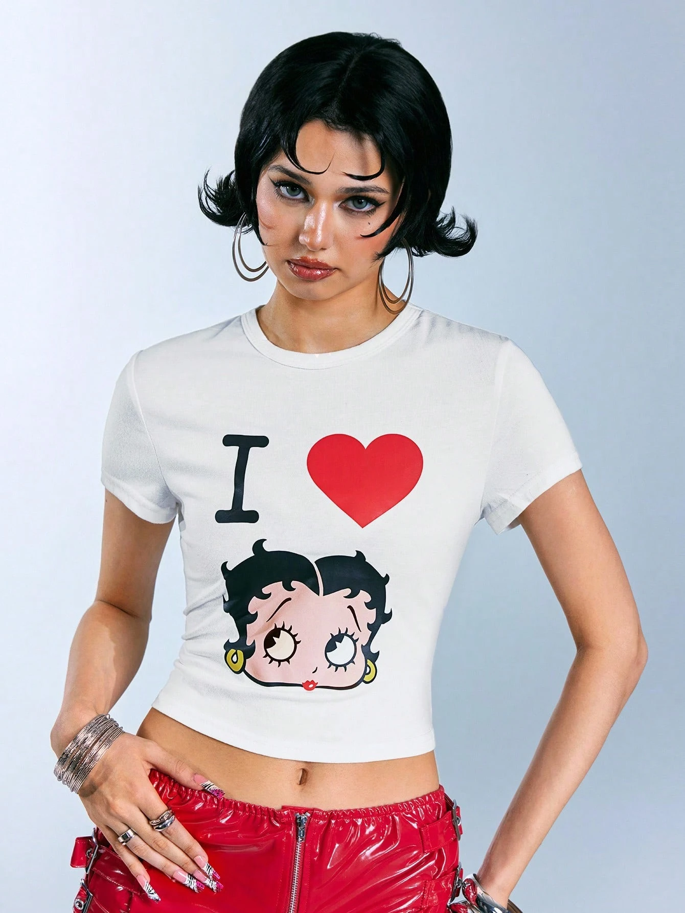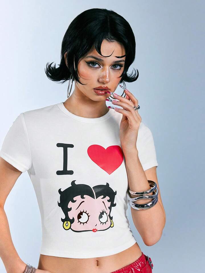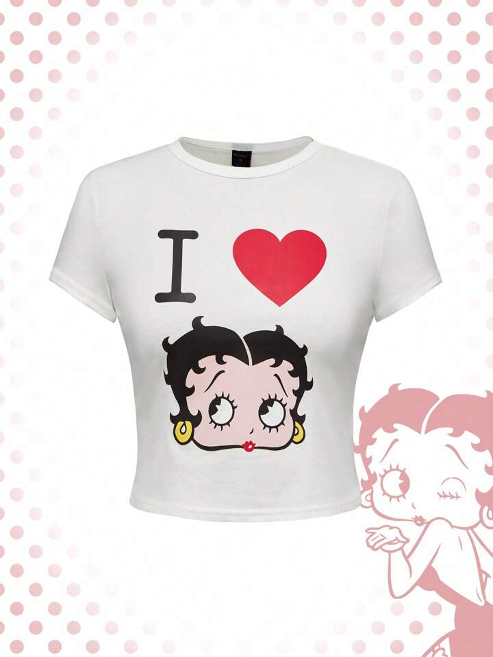 Betty Boop | ROMWE Sexy & Cute Cartoon Figure Graphic Women T-Shirt Suitable For Going Out