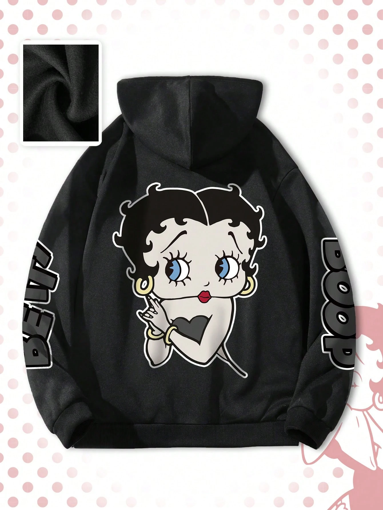 Betty Boop | ROMWE Spring Casual Graphic Men'S Fuchsia Zip-Up Hoodie With Cartoon Graphic, Comfortable For Autumn/Winter