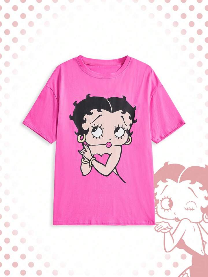 Betty Boop | ROMWE Women's Cartoon Figure Graphic Round Neck Short Sleeve T-Shirt