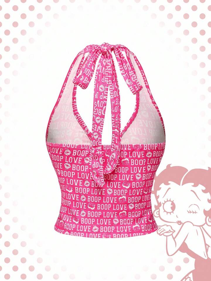 Betty Boop | ROMWE Women's Letter Graphic Halter Tie Backless Tank Top