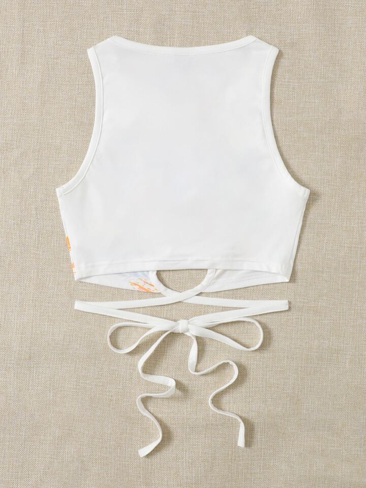 Bikercore 90s Letter Graphic Tie Back Crop Tank Top