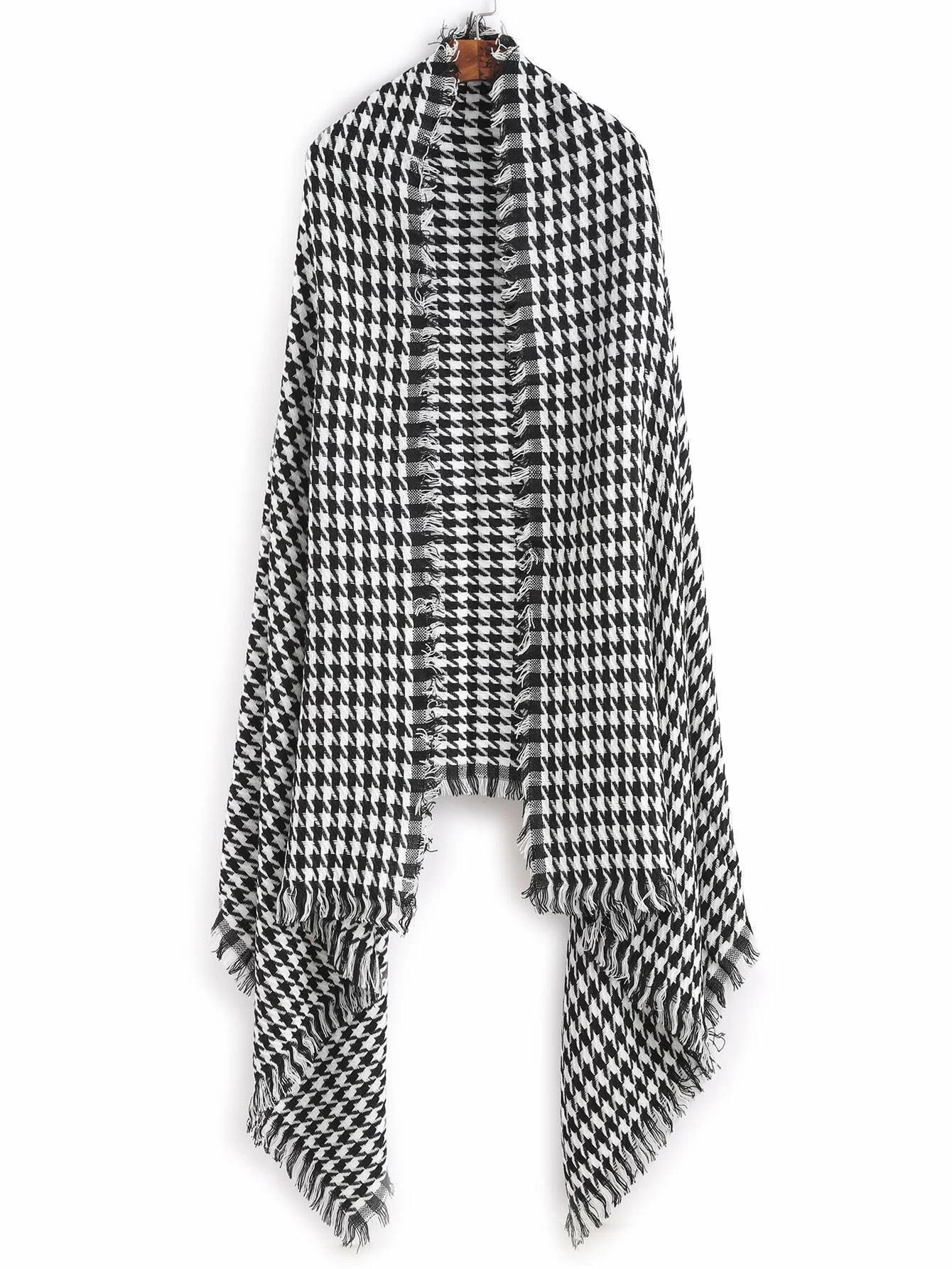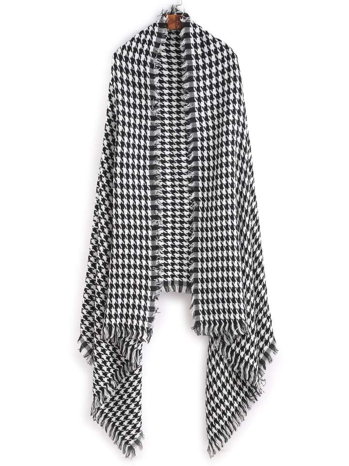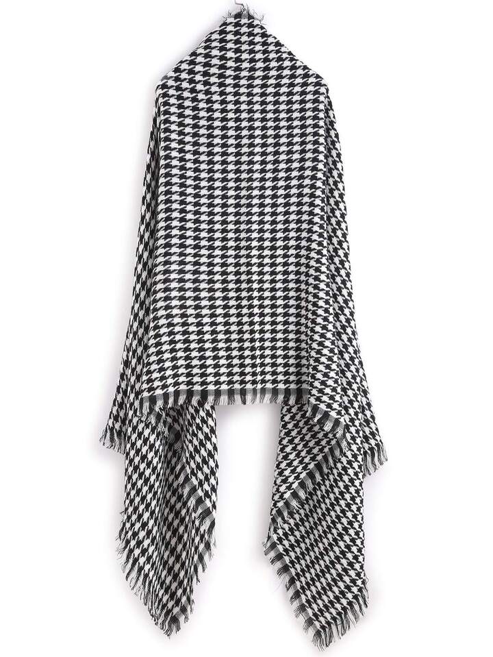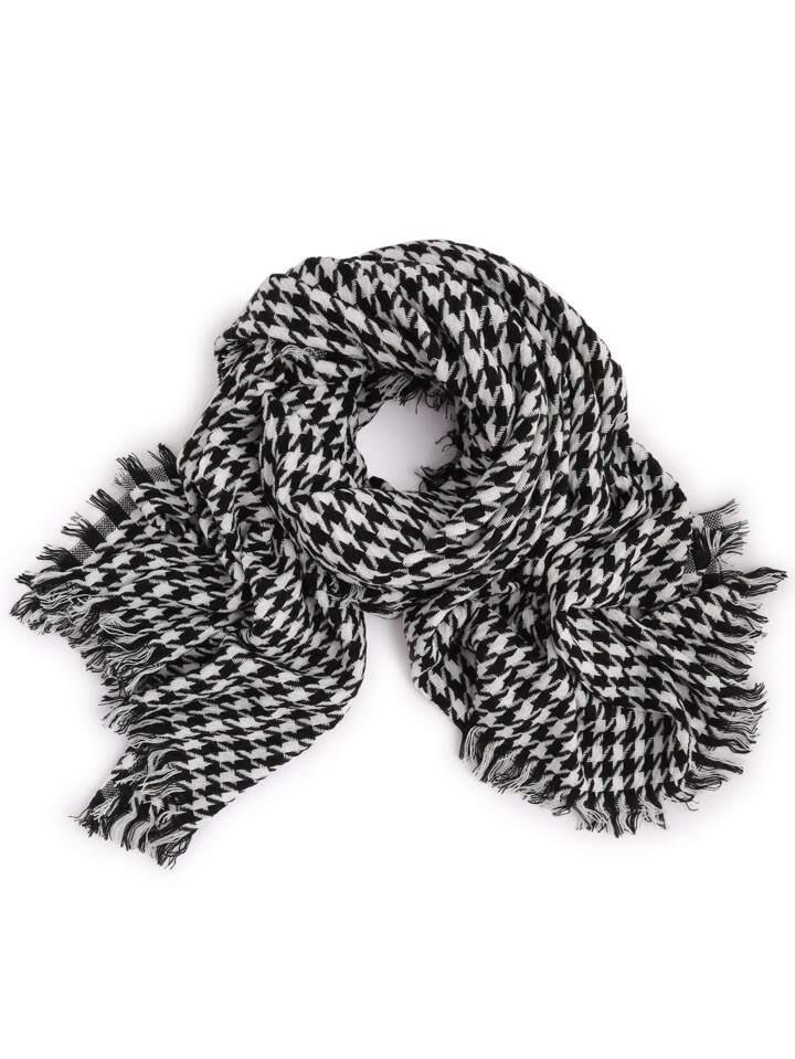 Black And White Houndstooth Long Scarf