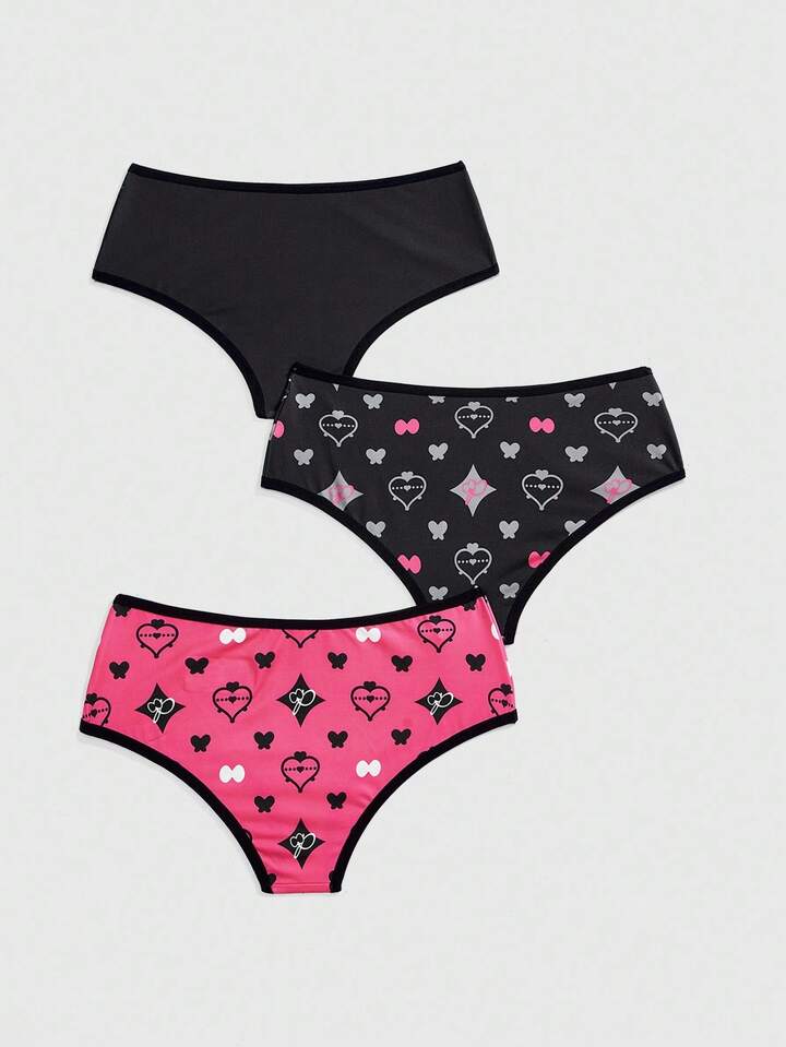 Black Jack X ROMWE 3pcs/Set Black Heart & Cartoon Figure Graphic Women's Briefs Panties