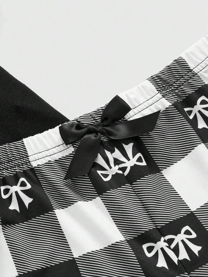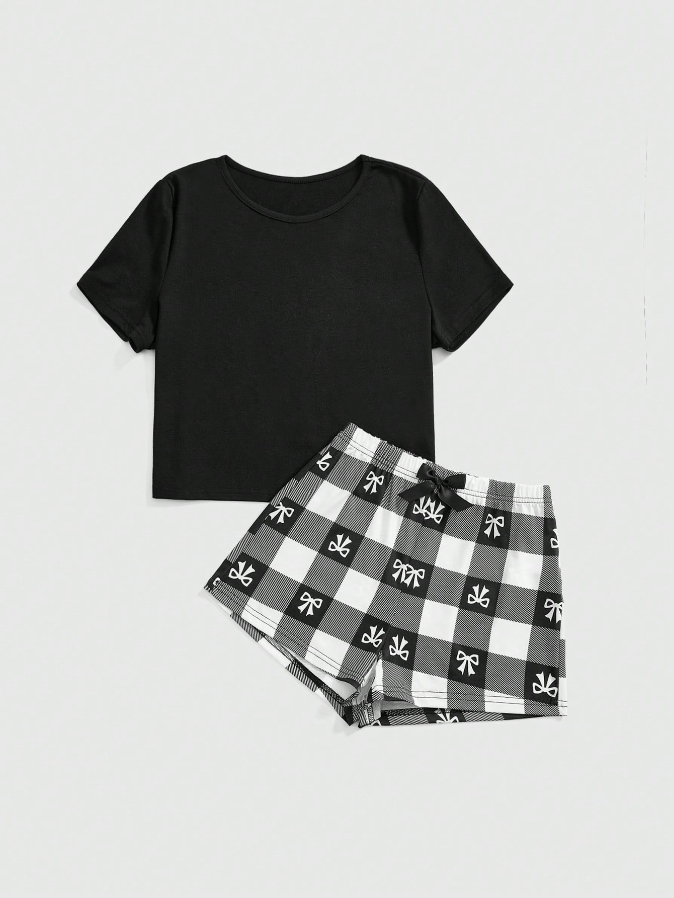 Black & White Checkered Butterfly Short Sleeve Casual Pajama Set