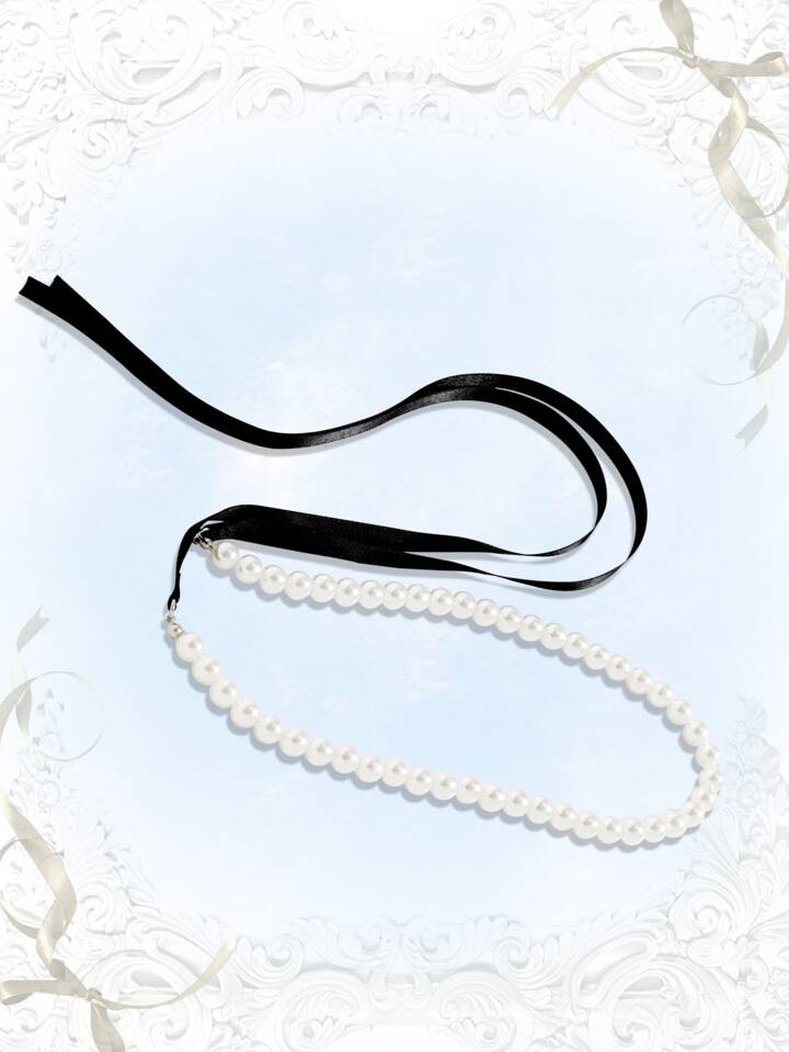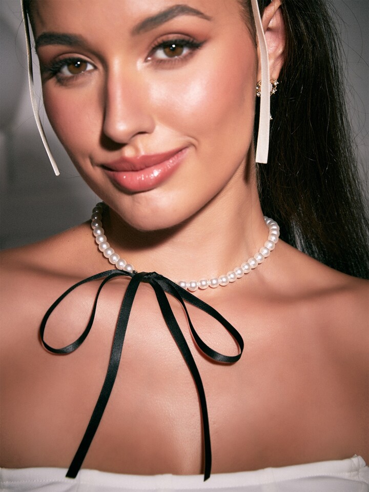 Bow Decor Faux Pearl Beaded Necklace