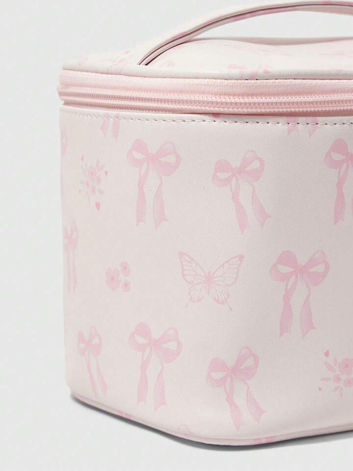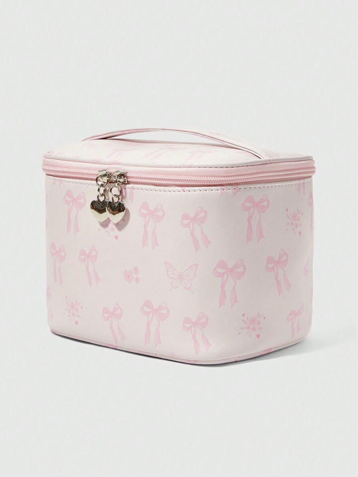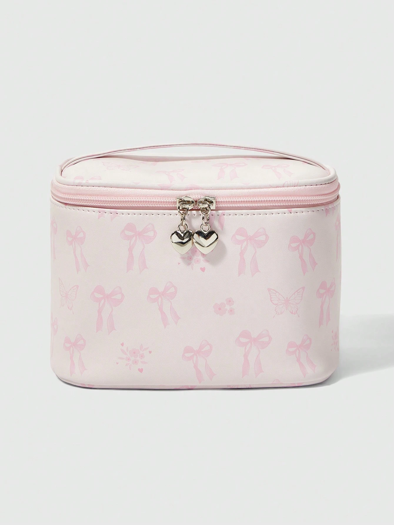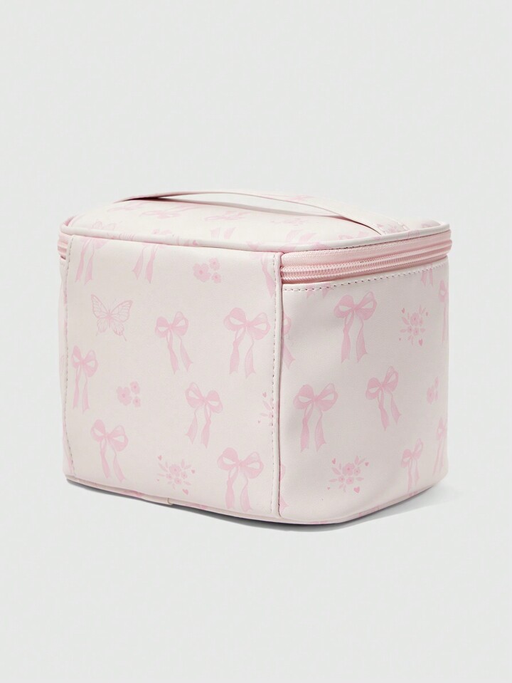 Bucket Style Bow And Butterfly Print Kawaii Fashion Portable Large Capacity Cosmetic Organizer Bag