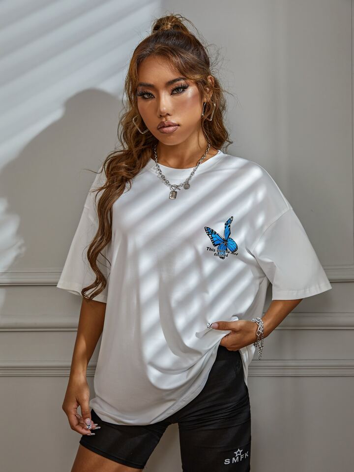 Butterfly And Slogan Graphic Drop Shoulder Tee Finished RULES ARE MADE TO BE This Story Is Not Finished Graphic Tees Women Tops