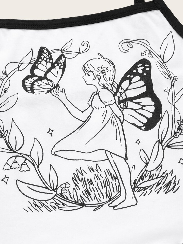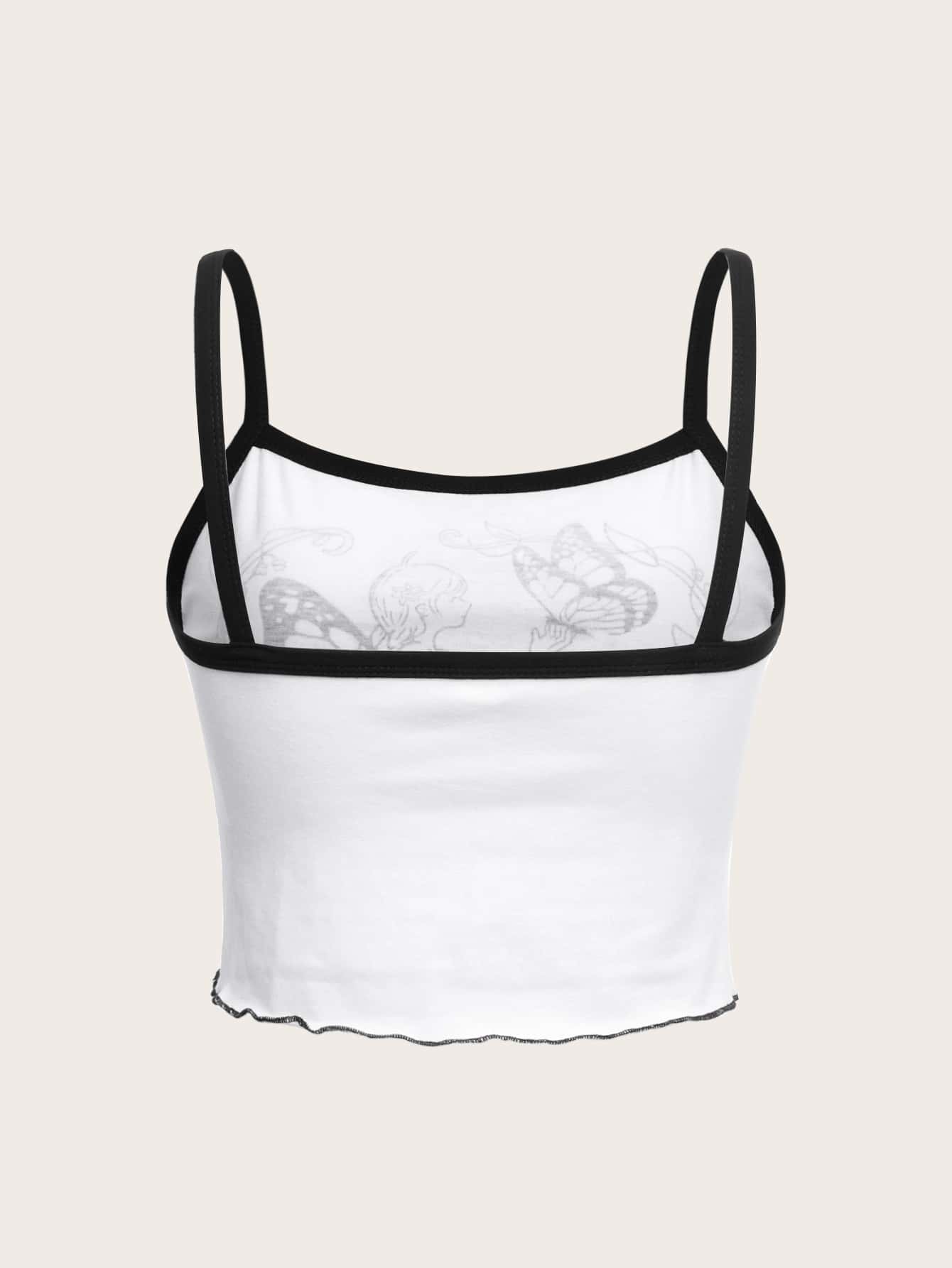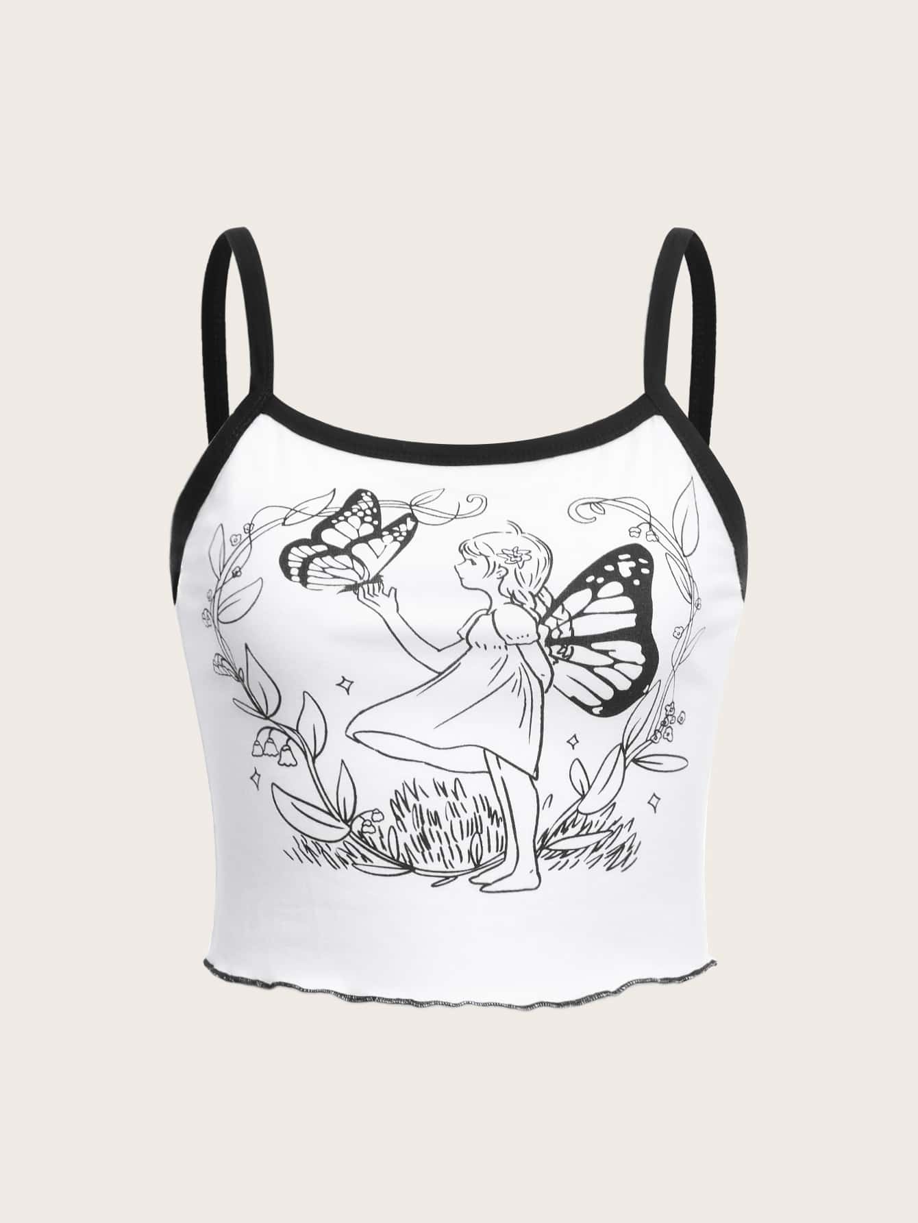 Butterfly & Figure Graphic Ringer Cami