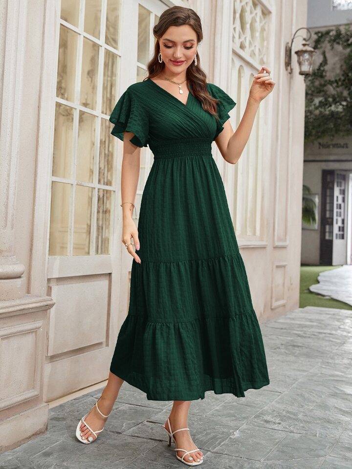 Butterfly Sleeve Shirred Ruffle Hem Dress Maxi Women Outfit