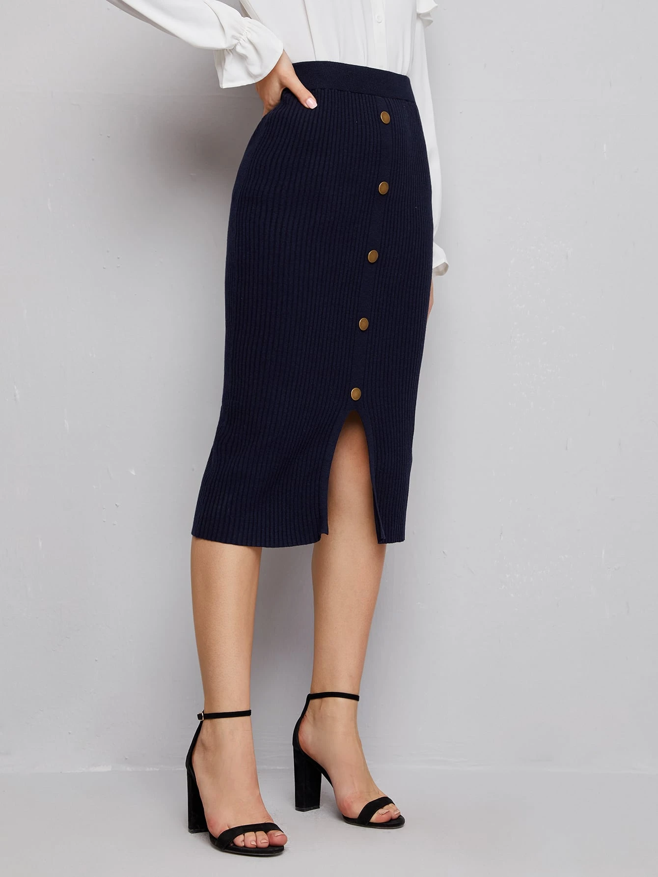 Button Front Knit Skirt