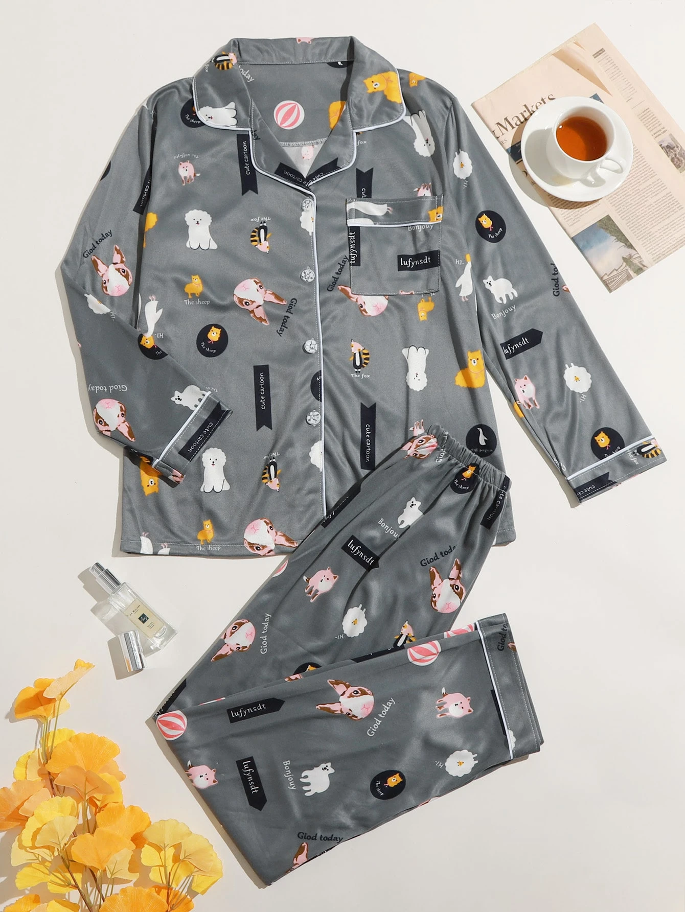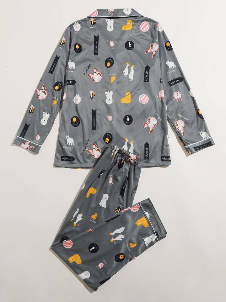 Cartoon Animal Print PJ Set