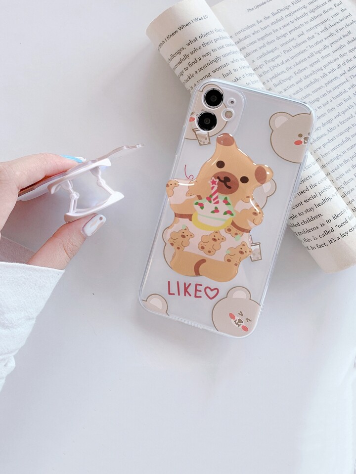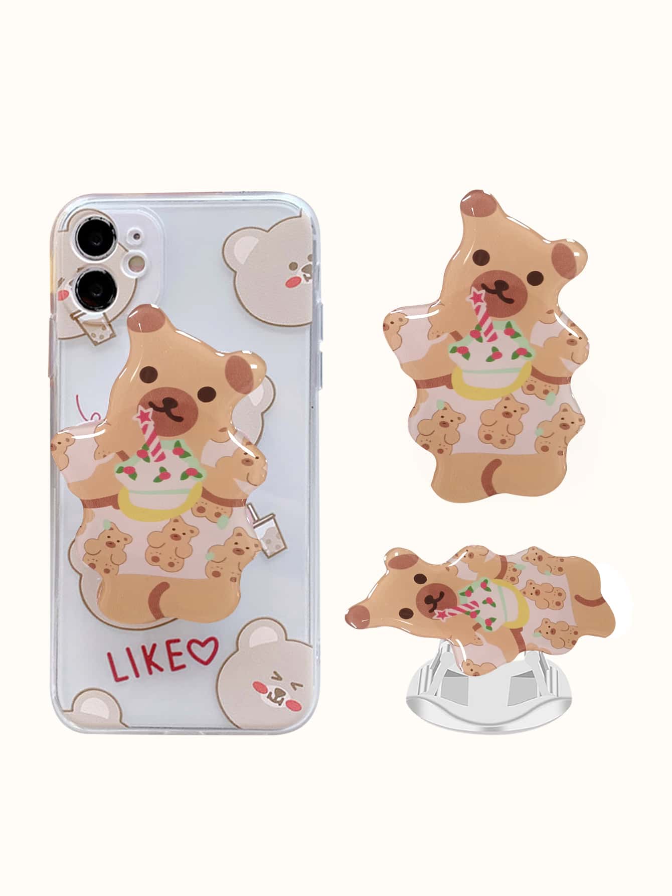 Cartoon Bear Phone Case With Stand-Out Phone Grip