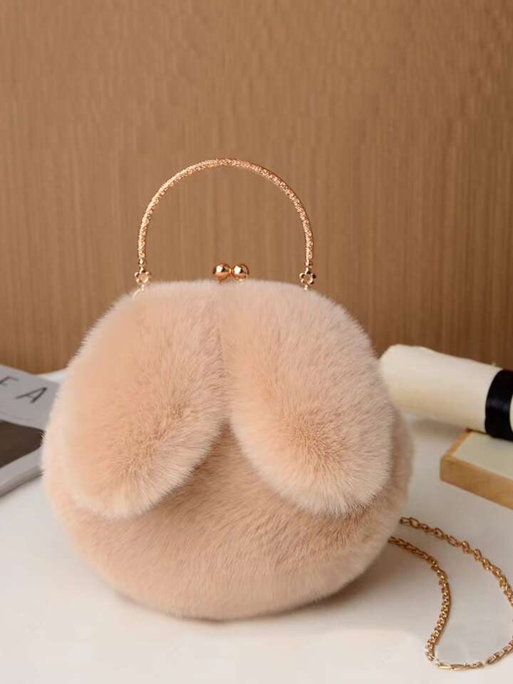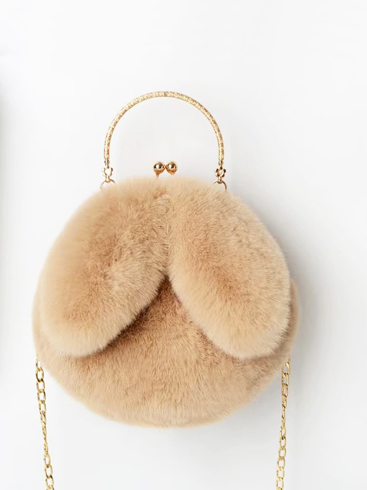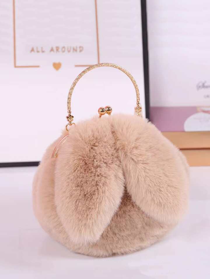 Cartoon Ear Decor Kiss Lock Fluffy Novelty Bag