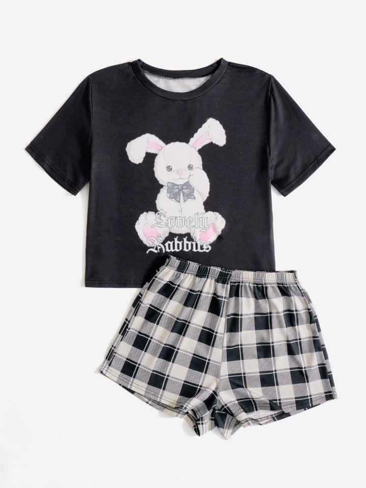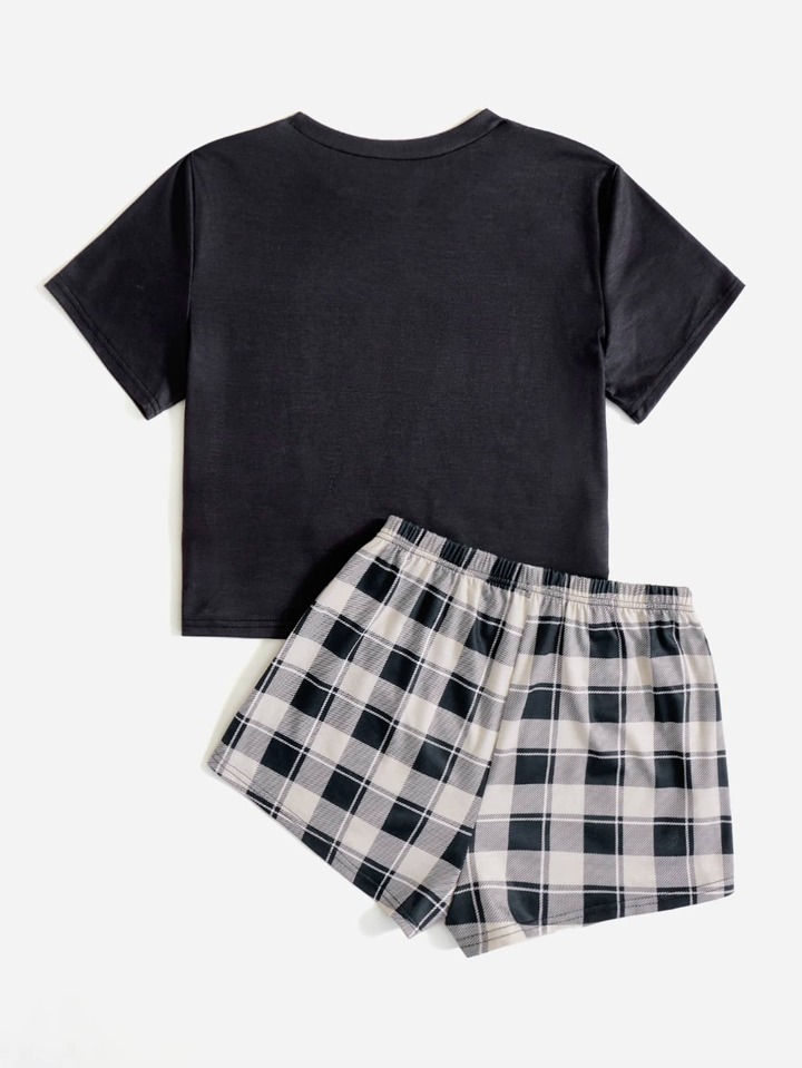 Cartoon Graphic Plaid PJ Set