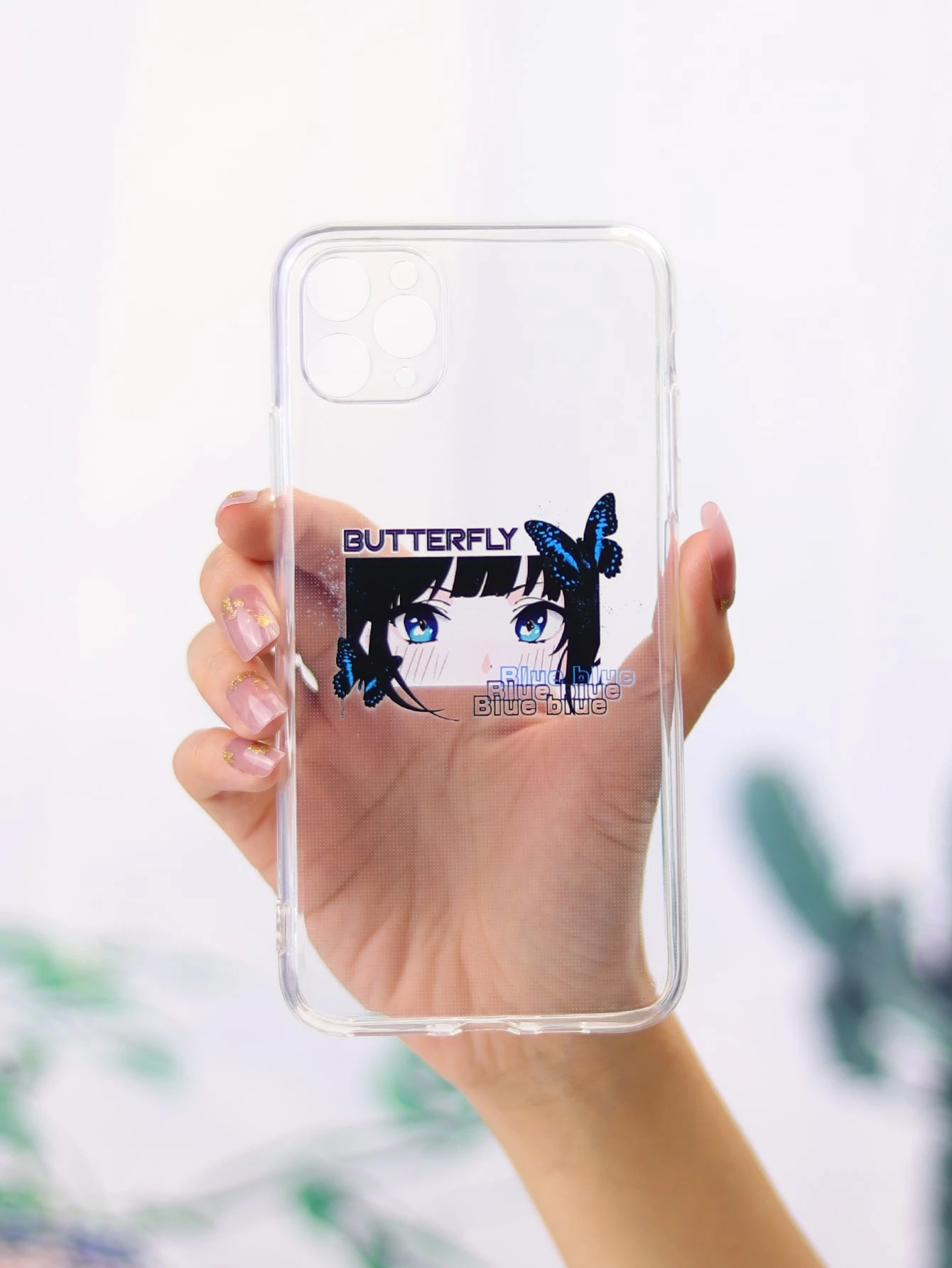 Cartoon & Letter Graphic Clear Phone Case