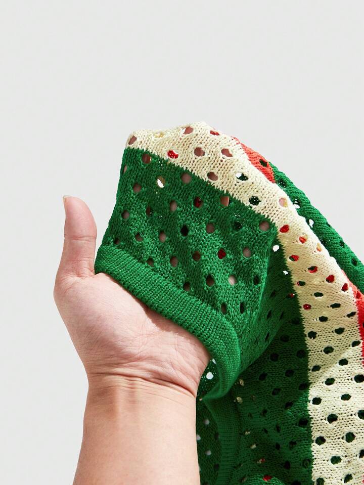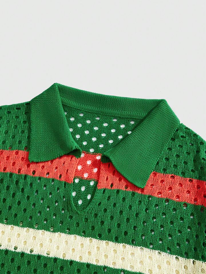 Casual Men Spring/Summer New Fashion Color Blocking Knit Short Sleeve Top, Vacation