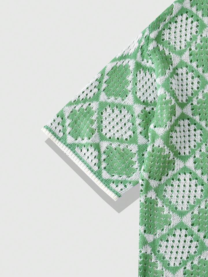 Casual Men's Floral Pattern Hollow Short Sleeve Knitted Polo Shirt, For Holiday